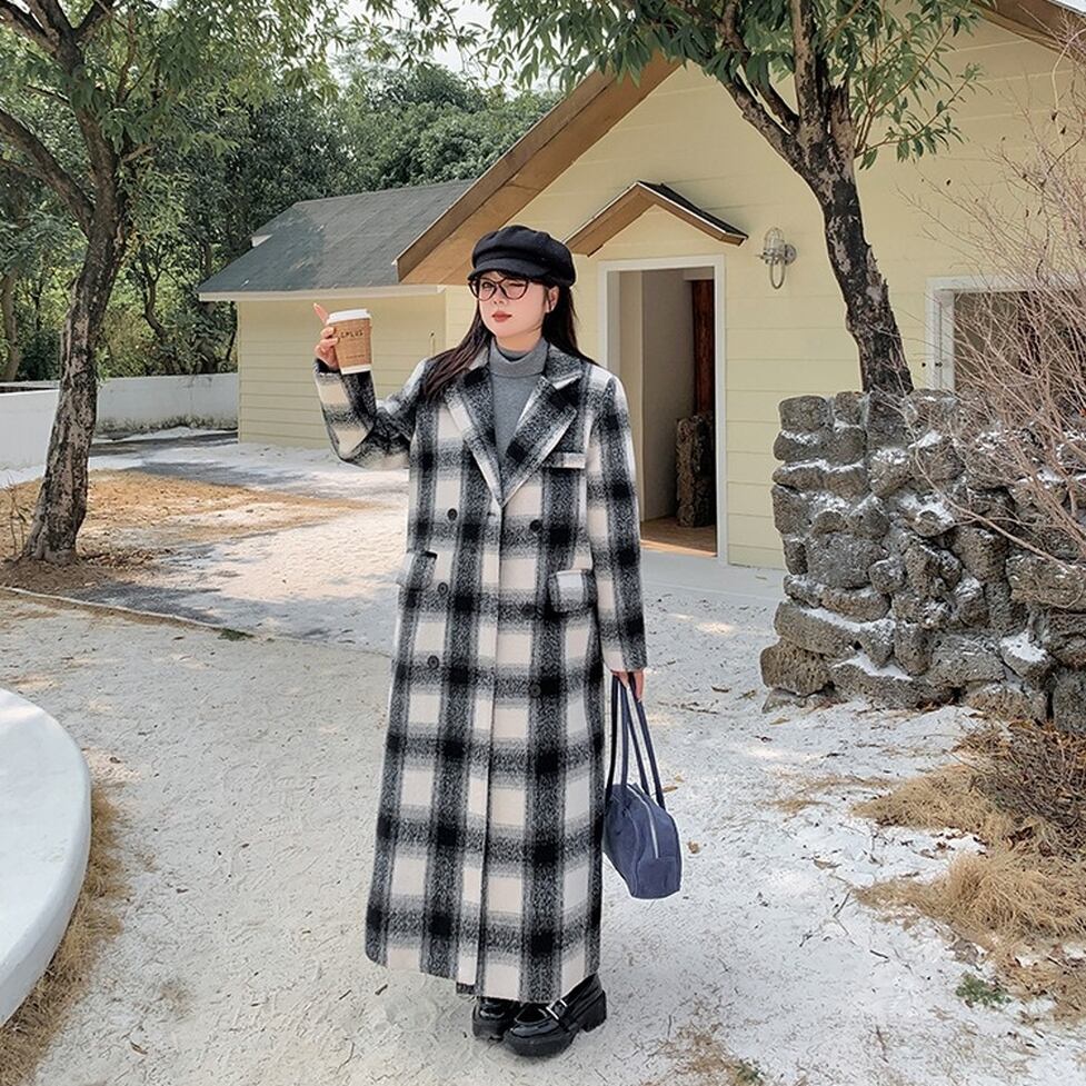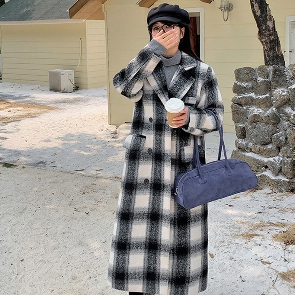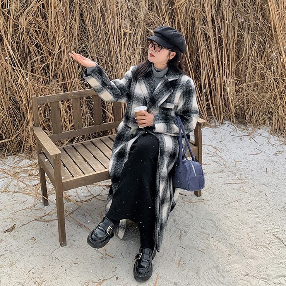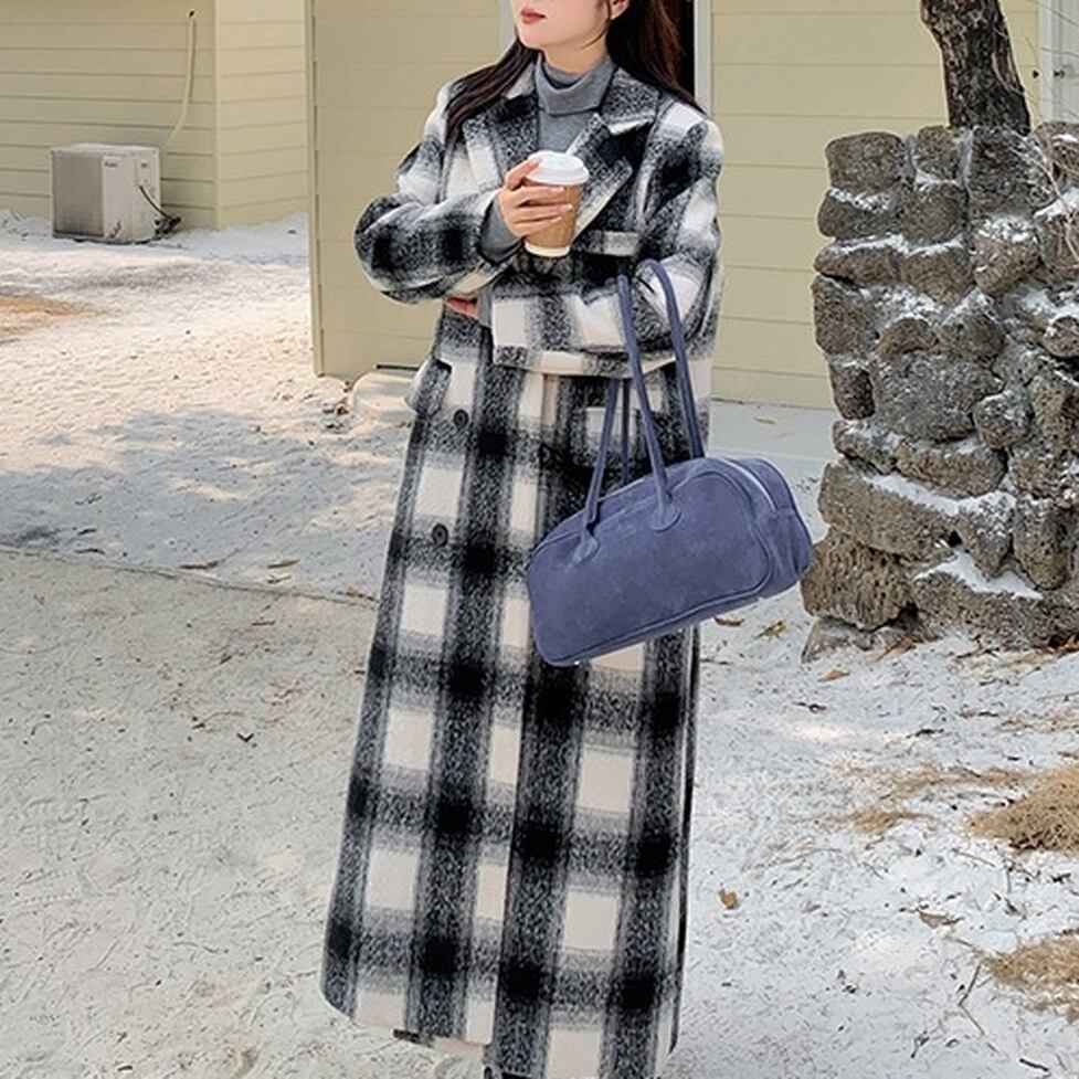 クラシカルなチェック柄がコーデを格上げしてくれるロングコート。羽織りアイテムとして優秀なサイズ感と厚み。オシャレにこなれ感として作用。コーディネートにもたらすいい効果を実証