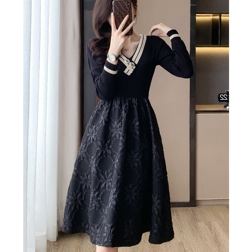 1枚でコーデが完成する上下切り替えデザインのドッキング異素材ワンピース。コーディネートにもたらすいい効果を実証。日常と非日常を行き来きできるふり幅の広い1枚