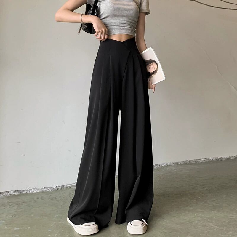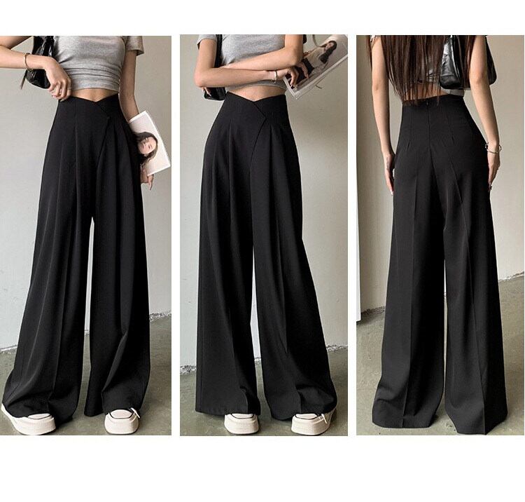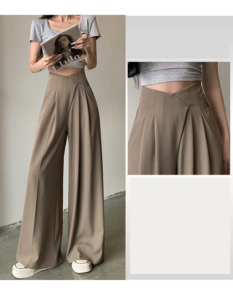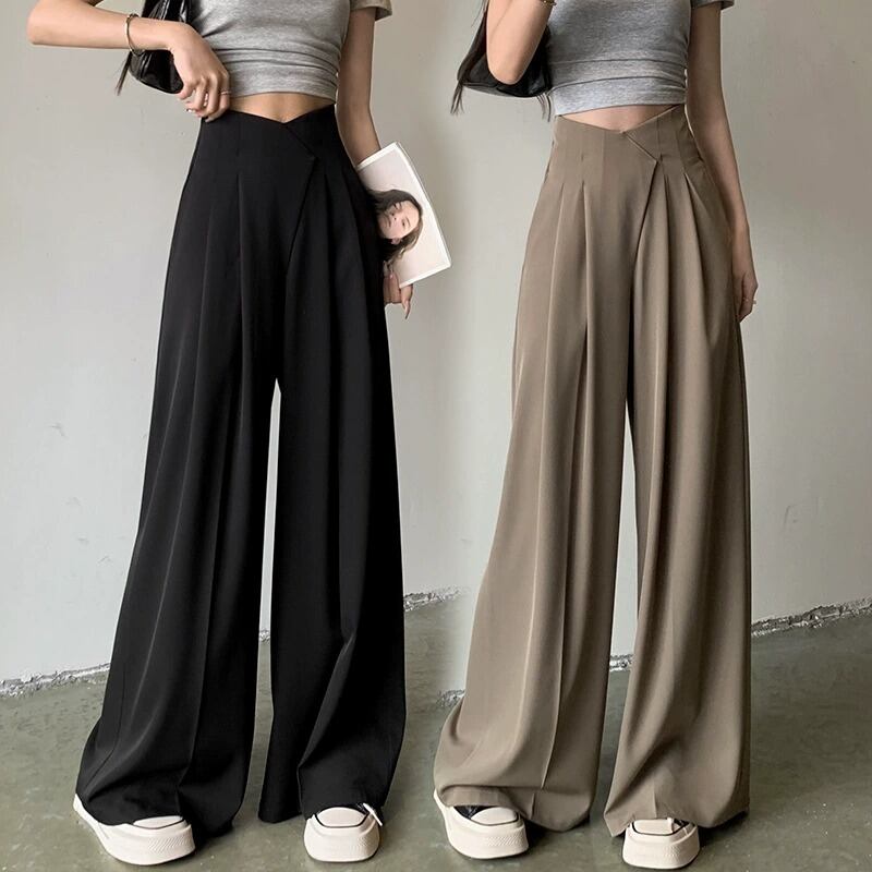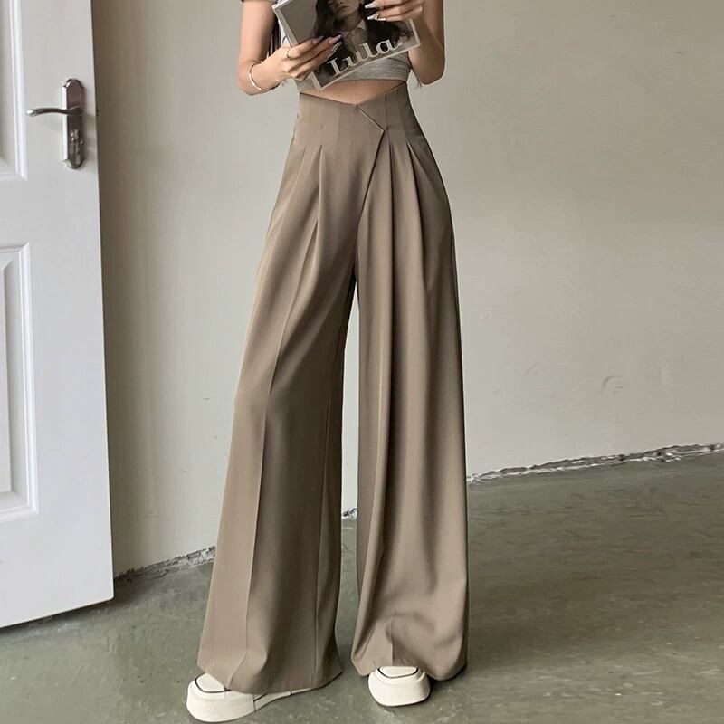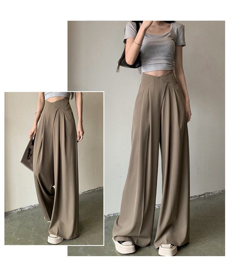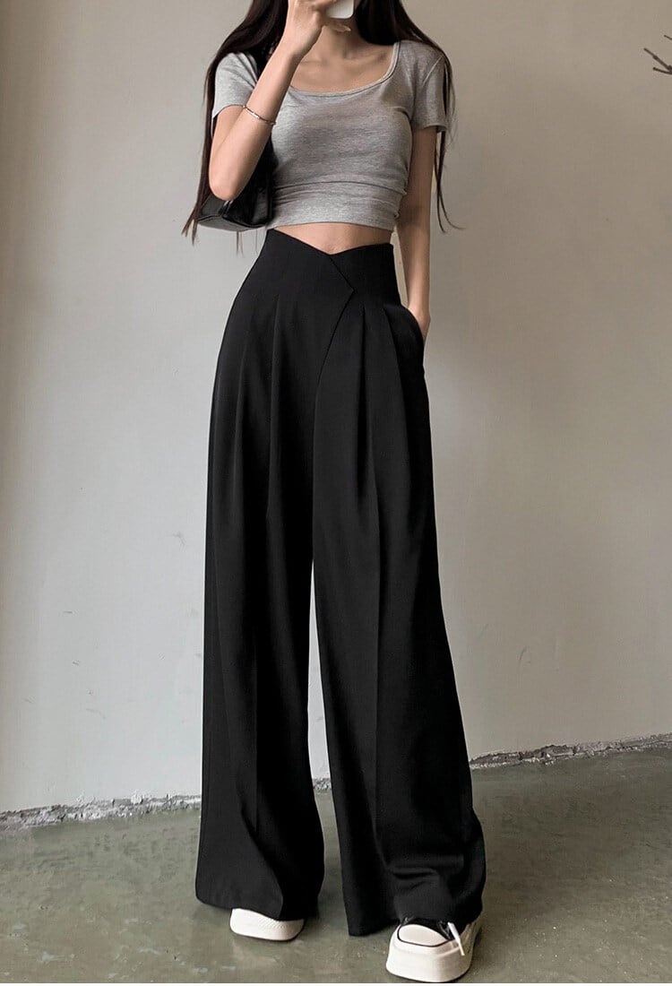 脚長効果抜群のハイウエスト設計が魅力の、アシンメトリーデザインのロングワイドパンツです。