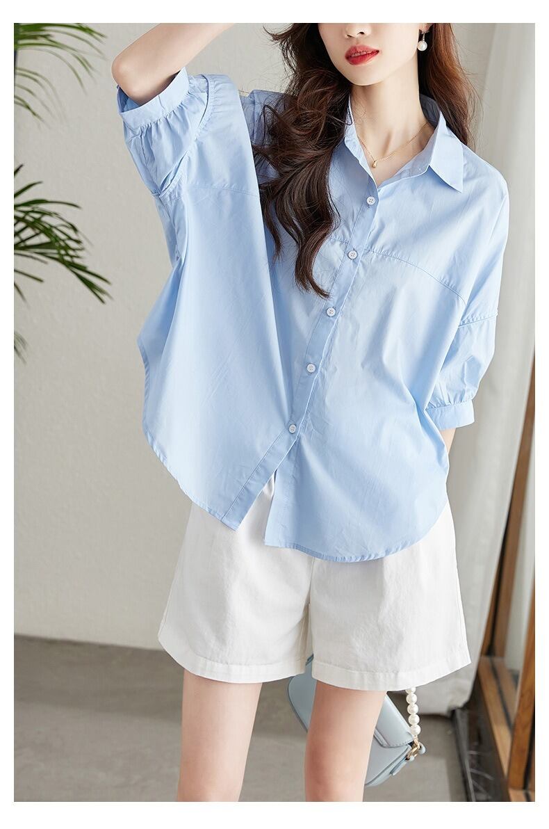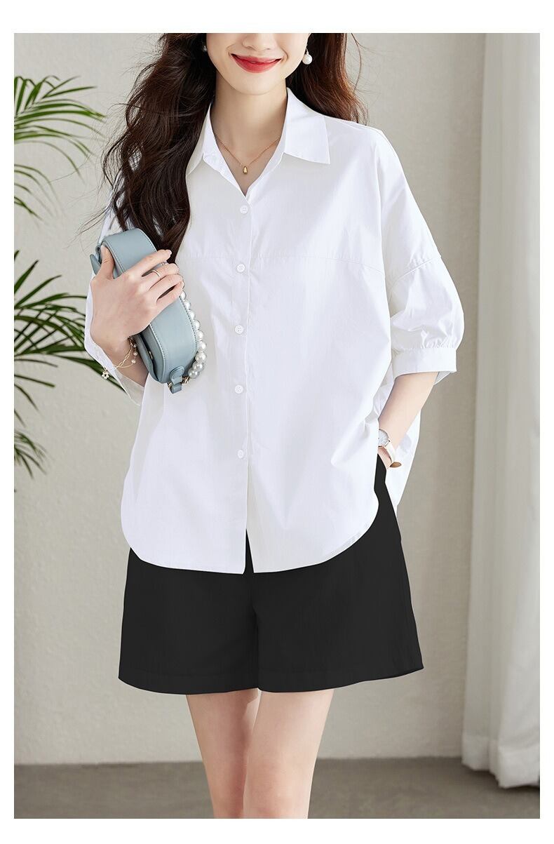 軽やかな抜け感を纏う、丈長デザインの5分袖パフスリーブブラウスです。
