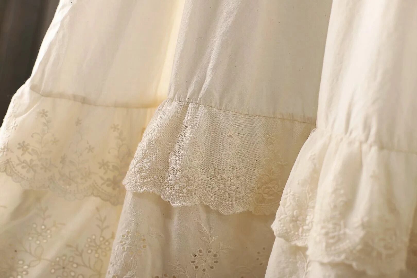 レースのディテールが上品さをプラスし、シンプルながら華やかさも兼ね備えた一着。