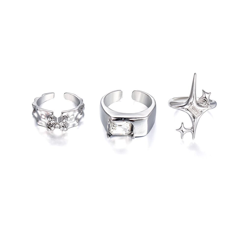 大人可愛いデザインが魅力のシルバーリング3個セットです。