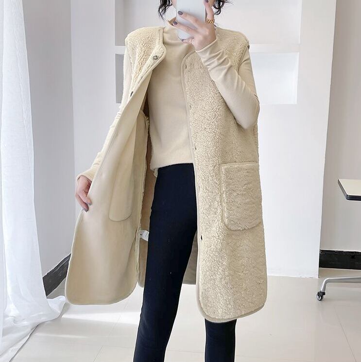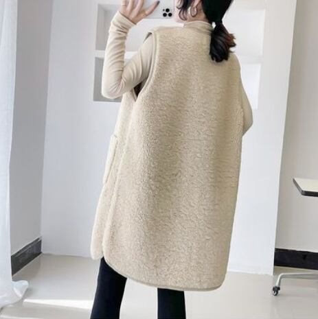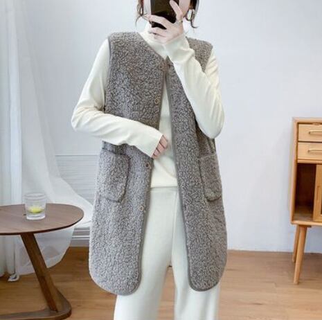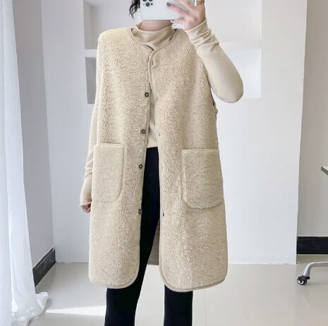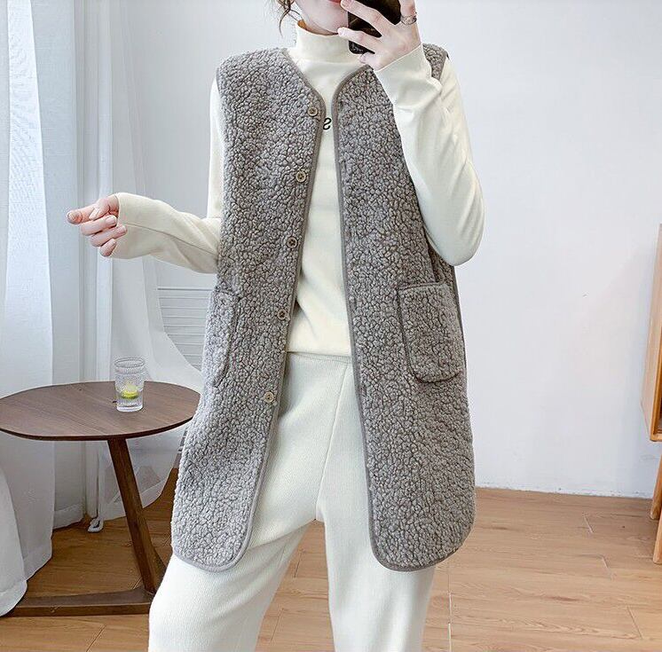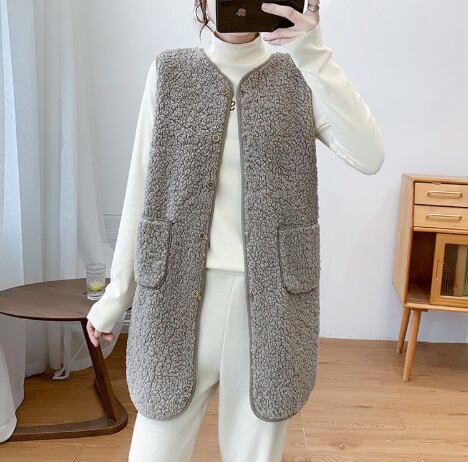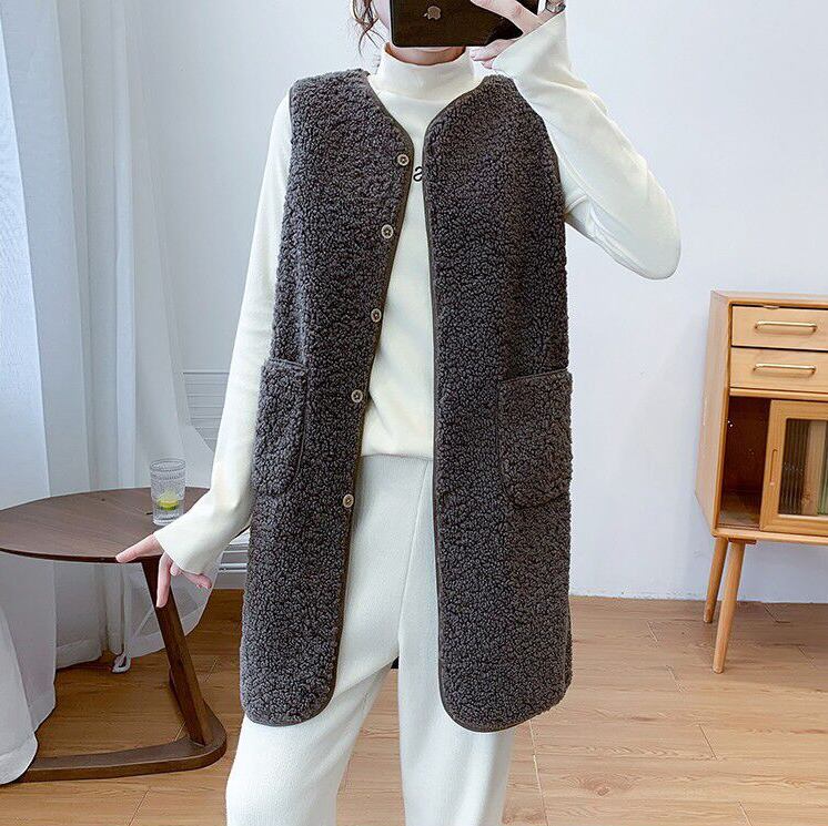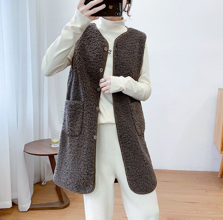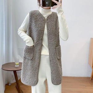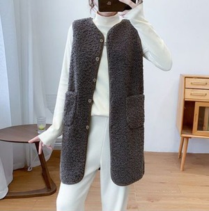 丸みのある裾回りやポケットのデザインがポイントのボアベスト