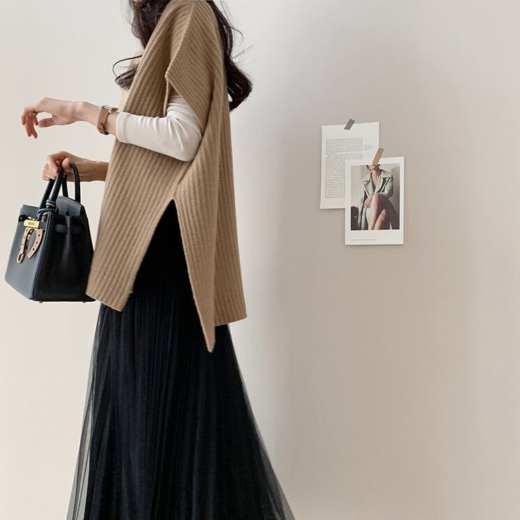 サイドにはスリットが入っていていろいろなボトムス合わせを楽しめます