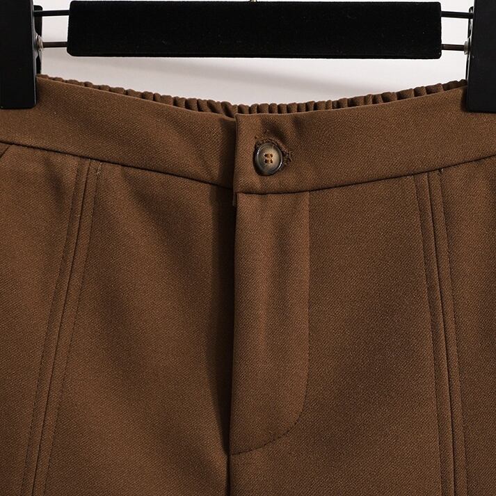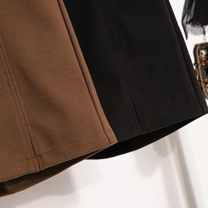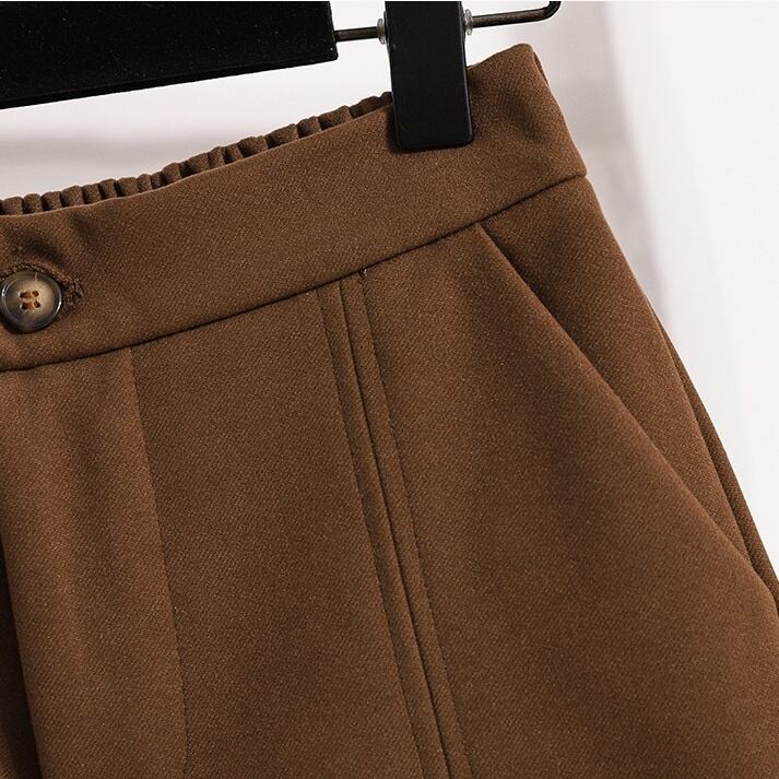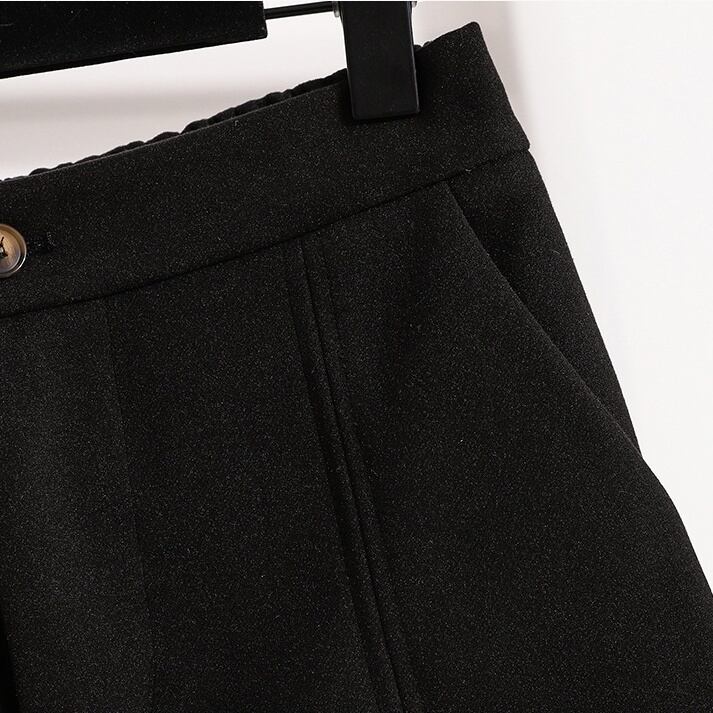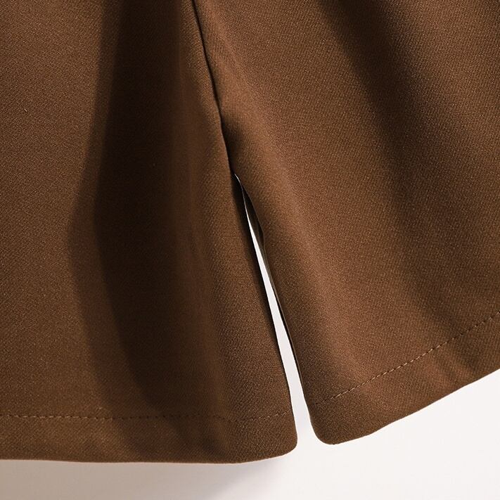 ウエストバックゴムとボタン付きのデザインで、リラックス感とスタイリッシュさを両立させています。膝上のワイドシルエットとフェミニンなスリットが魅力的で、どんなシーンでもこなれ感を演出します。春から冬まで、さまざまな季節に合わせてご着用いただける定番アイテムです。サイズ展開も豊富なのが嬉しいポイント。