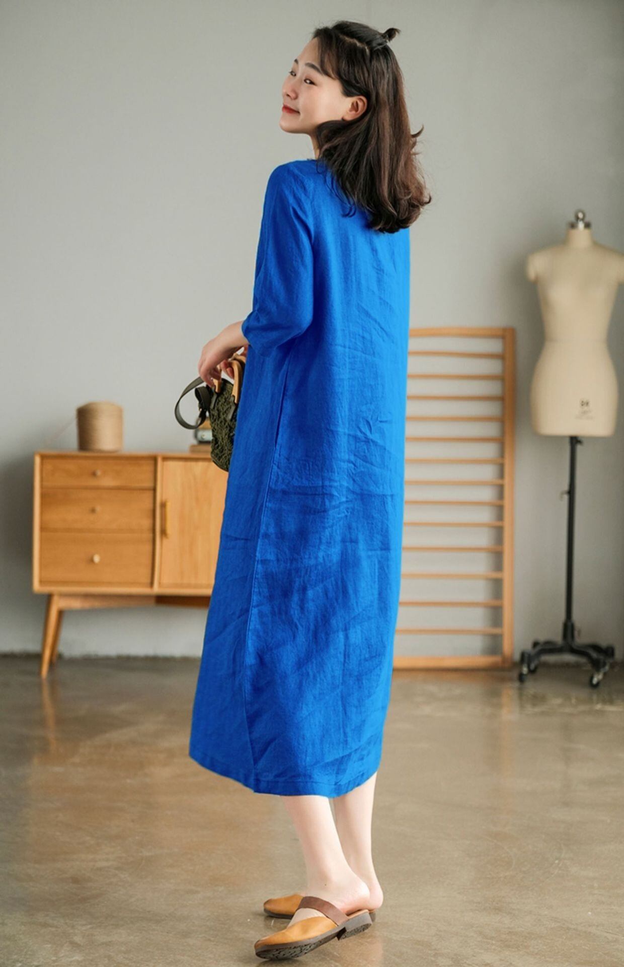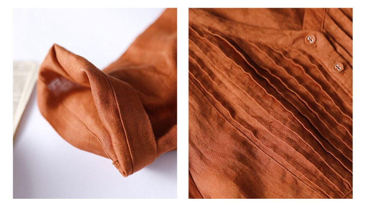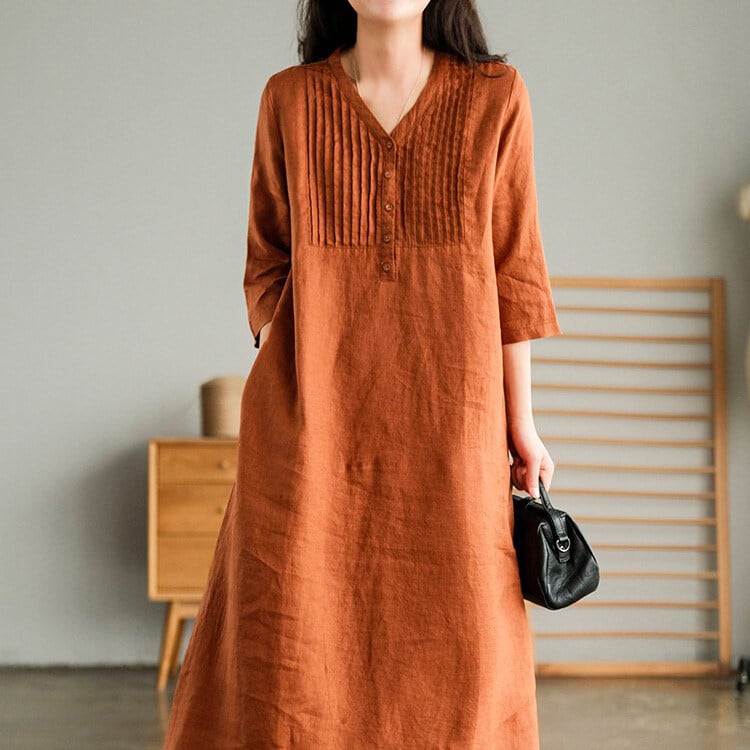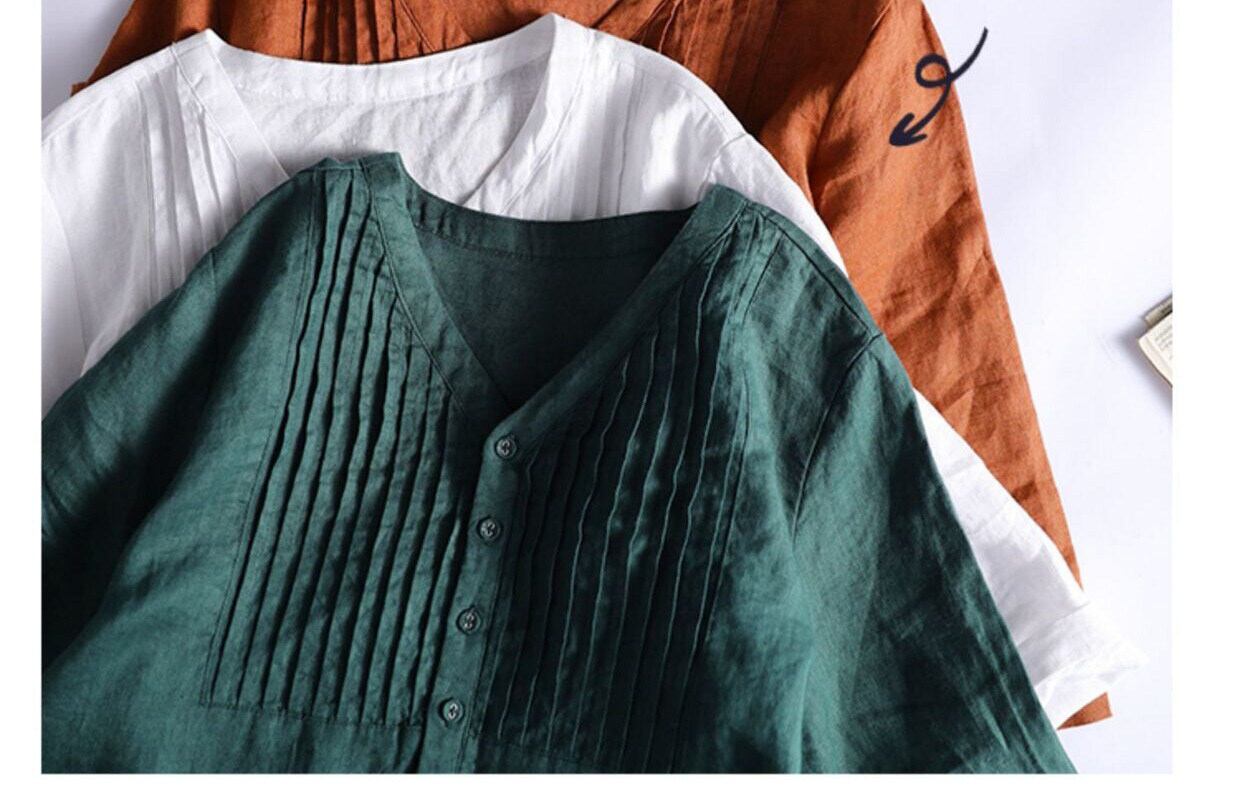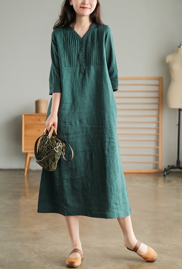 7分袖で季節を問わず着やすく、春夏は一枚で、秋口は羽織りを重ねて楽しめます。
