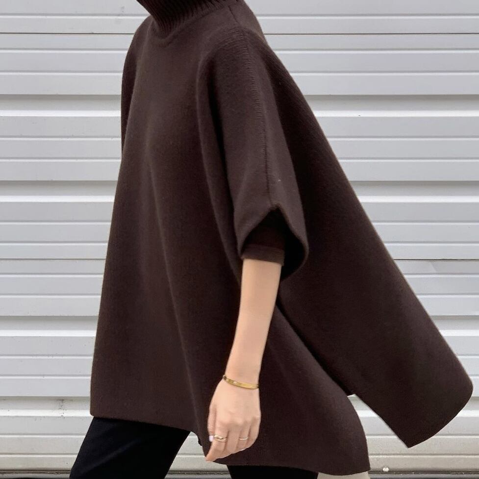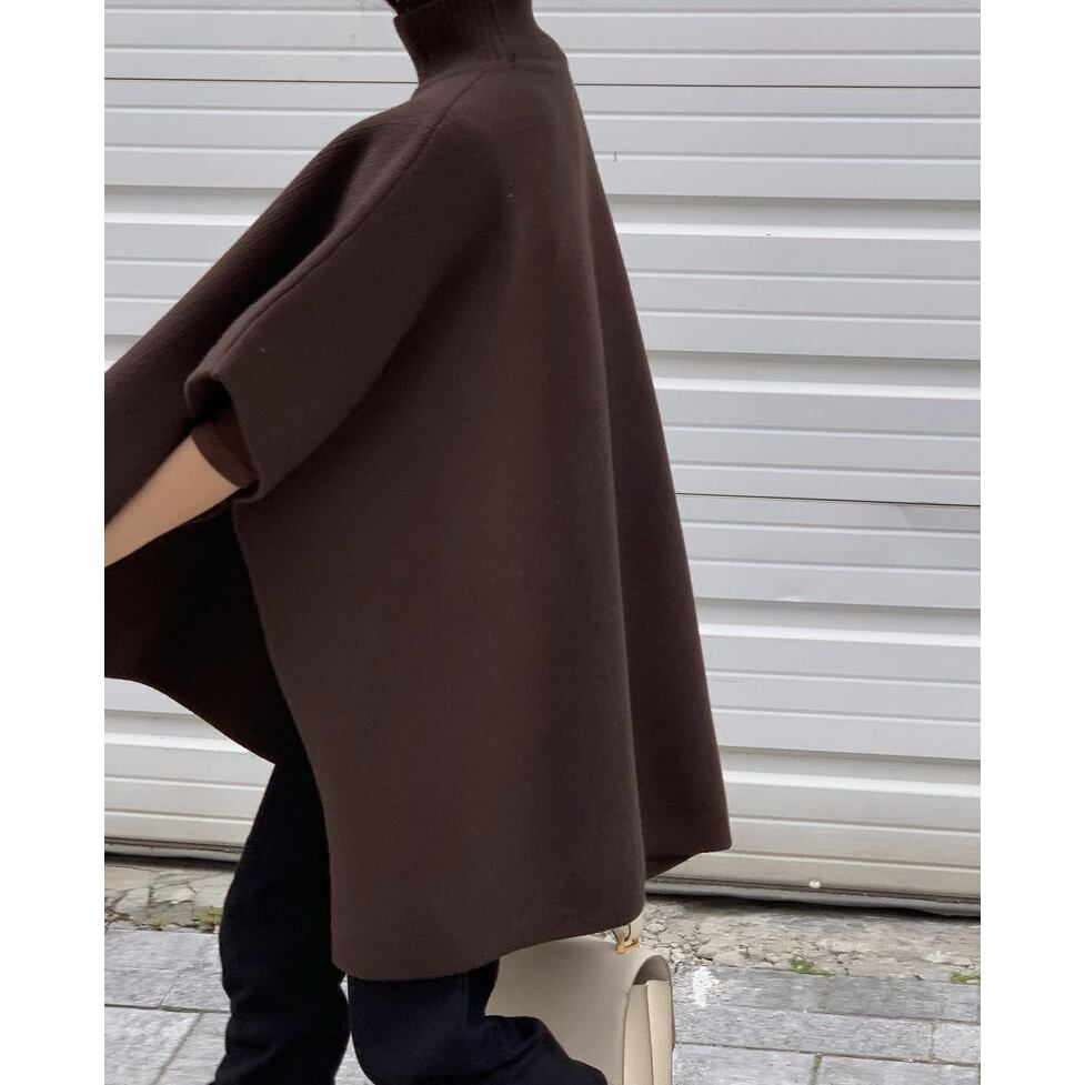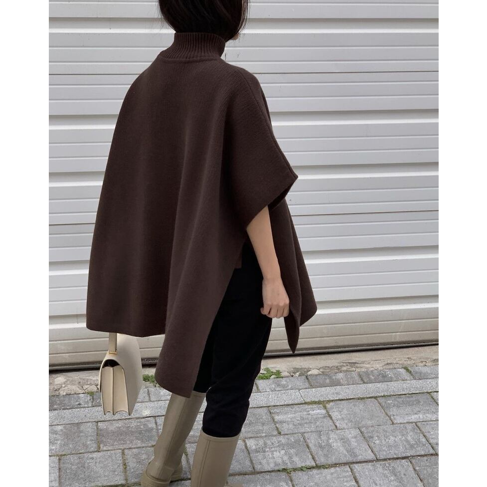 ボディラインを拾わないルーズなフレアシルエットが使える1枚に格上げするニットポンチョ。大人のかわいさが残る知的なイメージを演出。レイヤードするアイテムによって印象が変わるのも楽しい。どんな装いも支えてくれる安心感をそなえた圧倒的に使える服