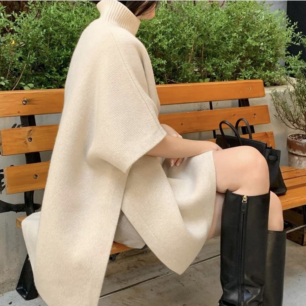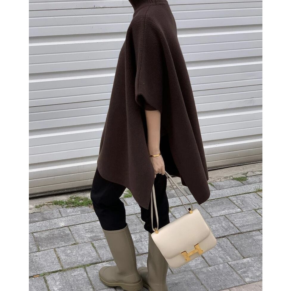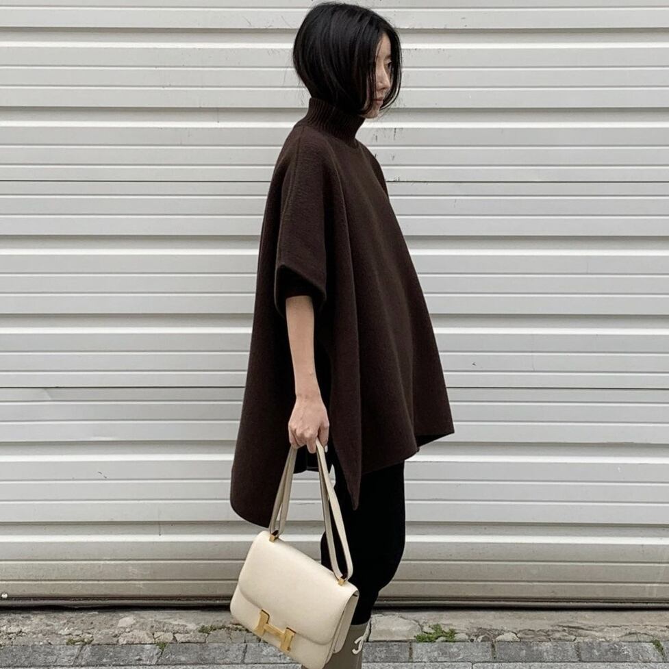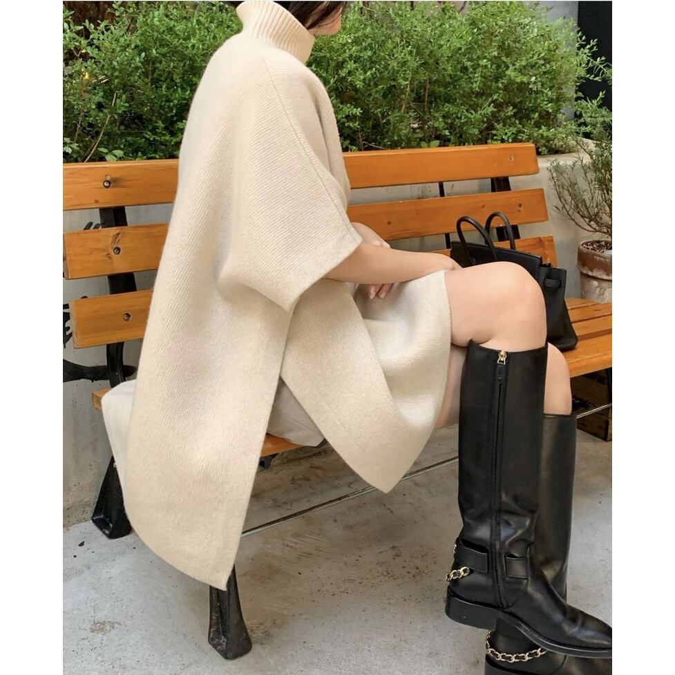 ボディラインを拾わないルーズなフレアシルエットが使える1枚に格上げするニットポンチョ。大人のかわいさが残る知的なイメージを演出。レイヤードするアイテムによって印象が変わるのも楽しい。どんな装いも支えてくれる安心感をそなえた圧倒的に使える服