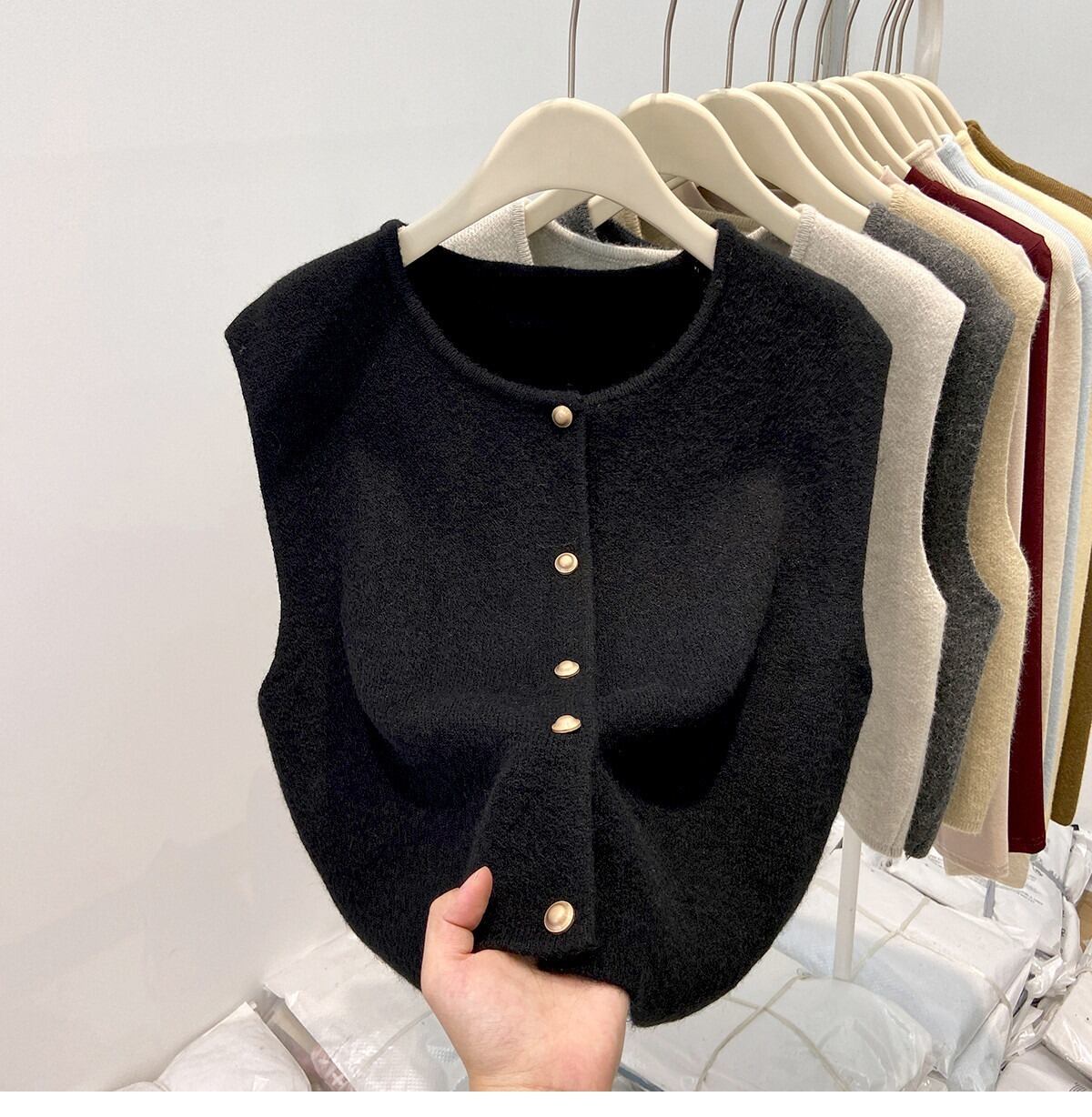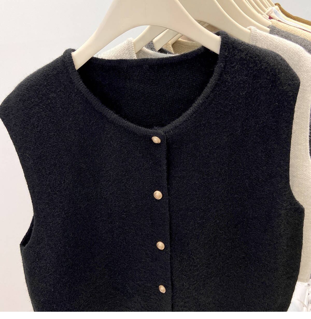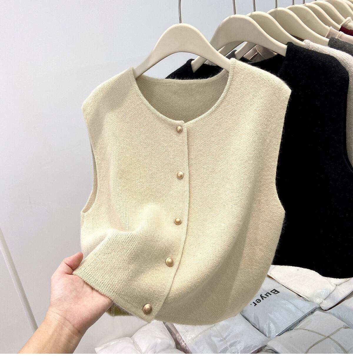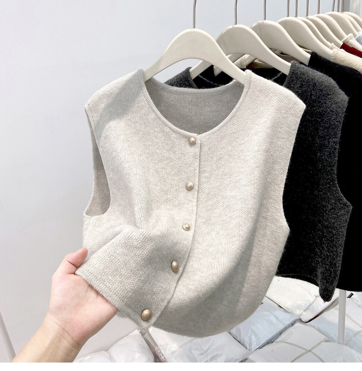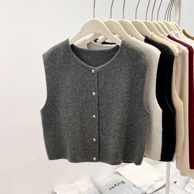 シンプルでおしゃれなレディースのカーディガンベストです。ノースリーブデザインが軽やかな印象を与え、春のコーディネートにぴったりのアイテムです。前開きのスタイルは、重ね着にも最適で、ボタンのシングルブレストデザインがさりげないおしゃれ感を演出します。カジュアルなお出かけやデート、旅行、女子会など、様々なシーンで大活躍できる一枚です。