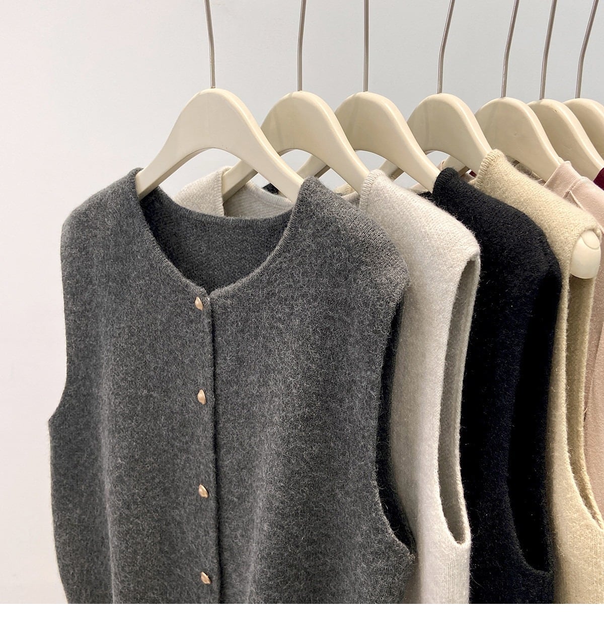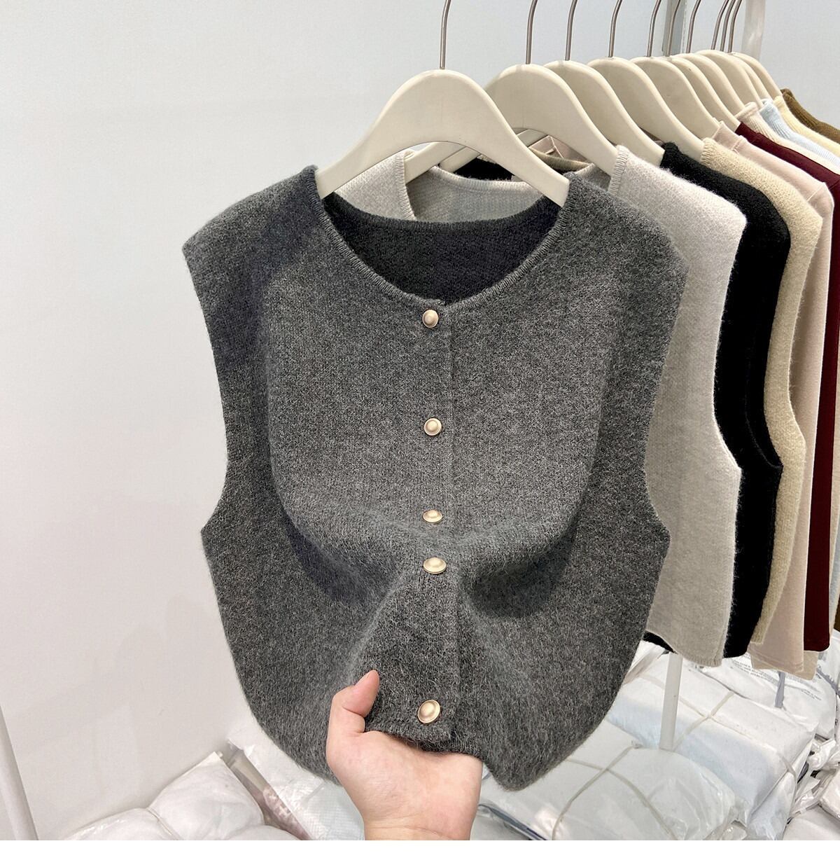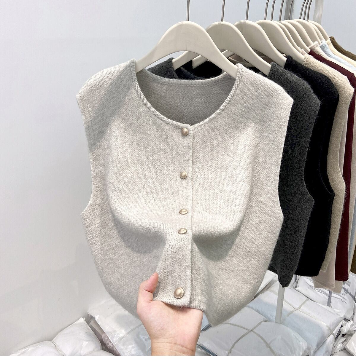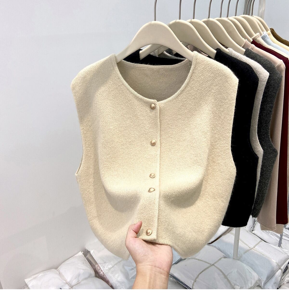 シンプルでおしゃれなレディースのカーディガンベストです。ノースリーブデザインが軽やかな印象を与え、春のコーディネートにぴったりのアイテムです。前開きのスタイルは、重ね着にも最適で、ボタンのシングルブレストデザインがさりげないおしゃれ感を演出します。カジュアルなお出かけやデート、旅行、女子会など、様々なシーンで大活躍できる一枚です。