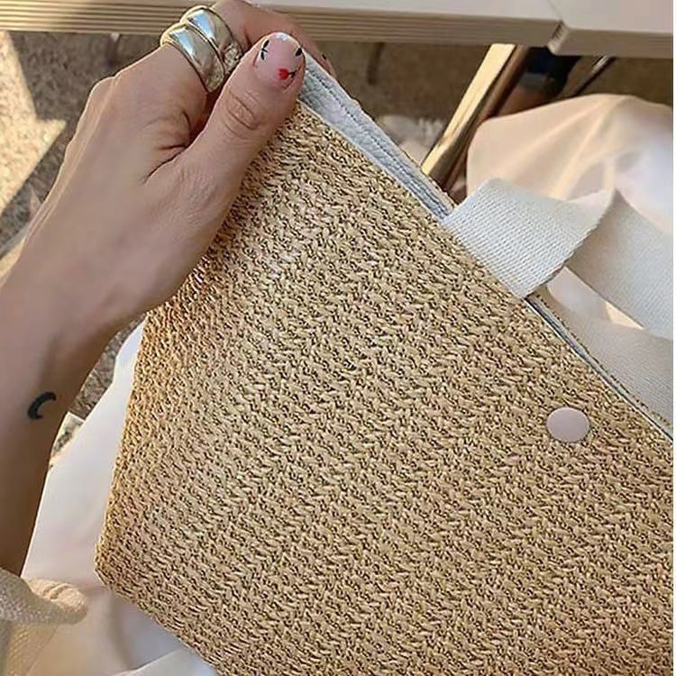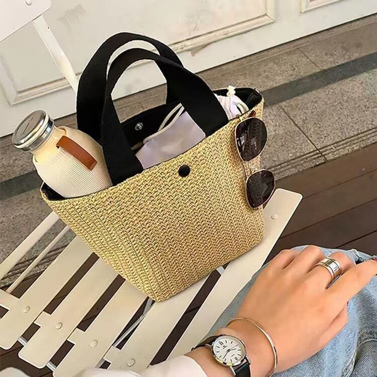 このハンドバッグは、肩がけや手持ちでも使える便利なデザインで、かごバッグの風合いを楽しめます。