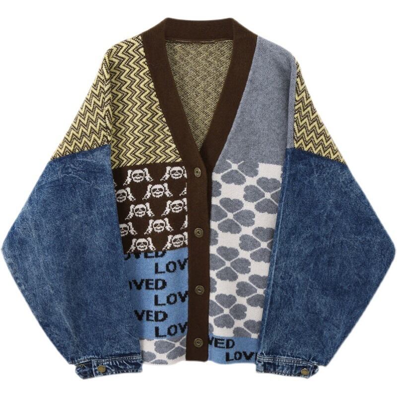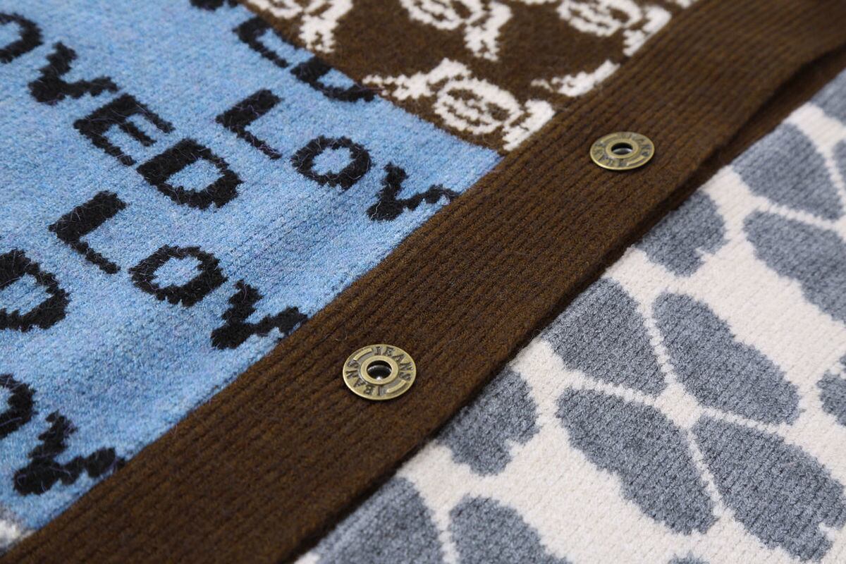 異素材と多彩な柄を組み合わせた、個性的なデザインカーディガン。ジグザグ柄や花柄、ロゴモチーフなど、遊び心あふれるパターンが視線を集め、1枚でコーデの主役になるアイテムです。