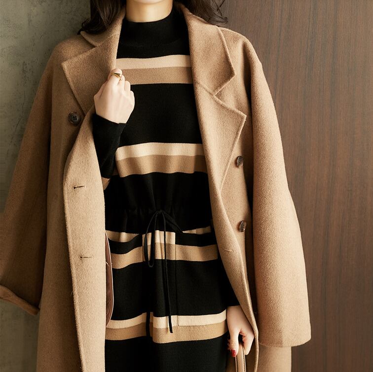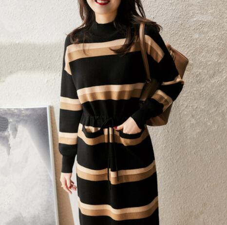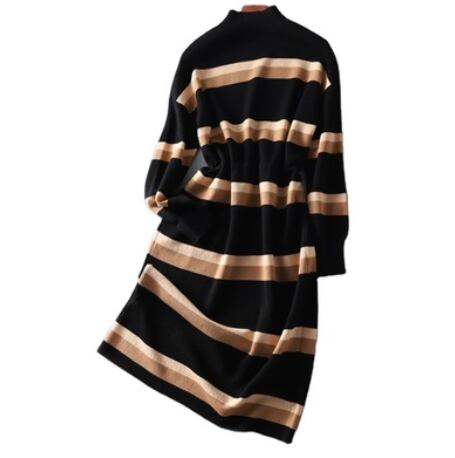 ベーシックな色の組み合わせがポイントのニットワンピース