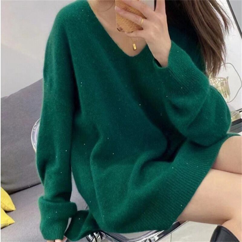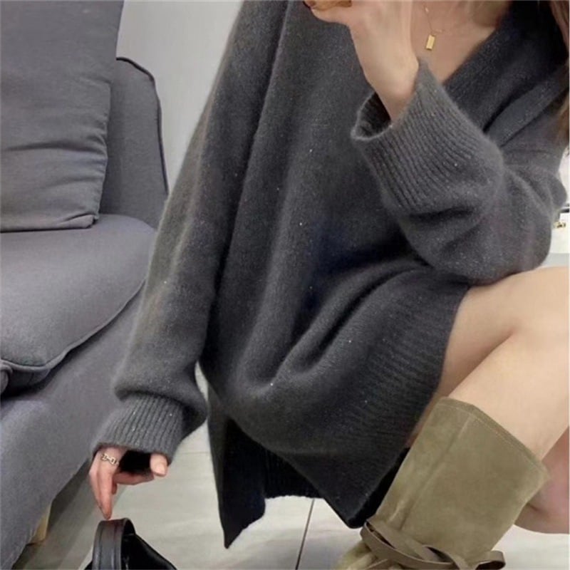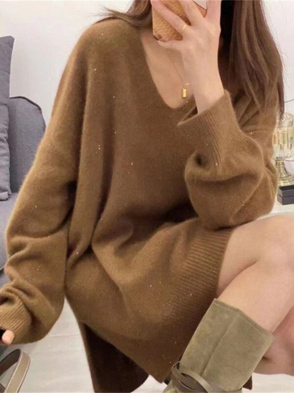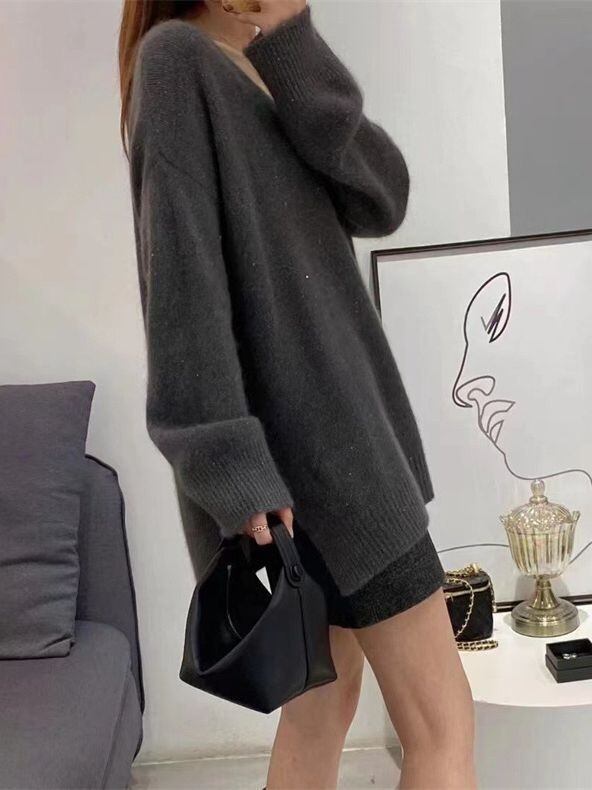 ミドル丈のデザインで、長袖ならではの暖かさを感じられ、Vネックとストレートシルエットが、スッキリとした魅力をプラスしています。