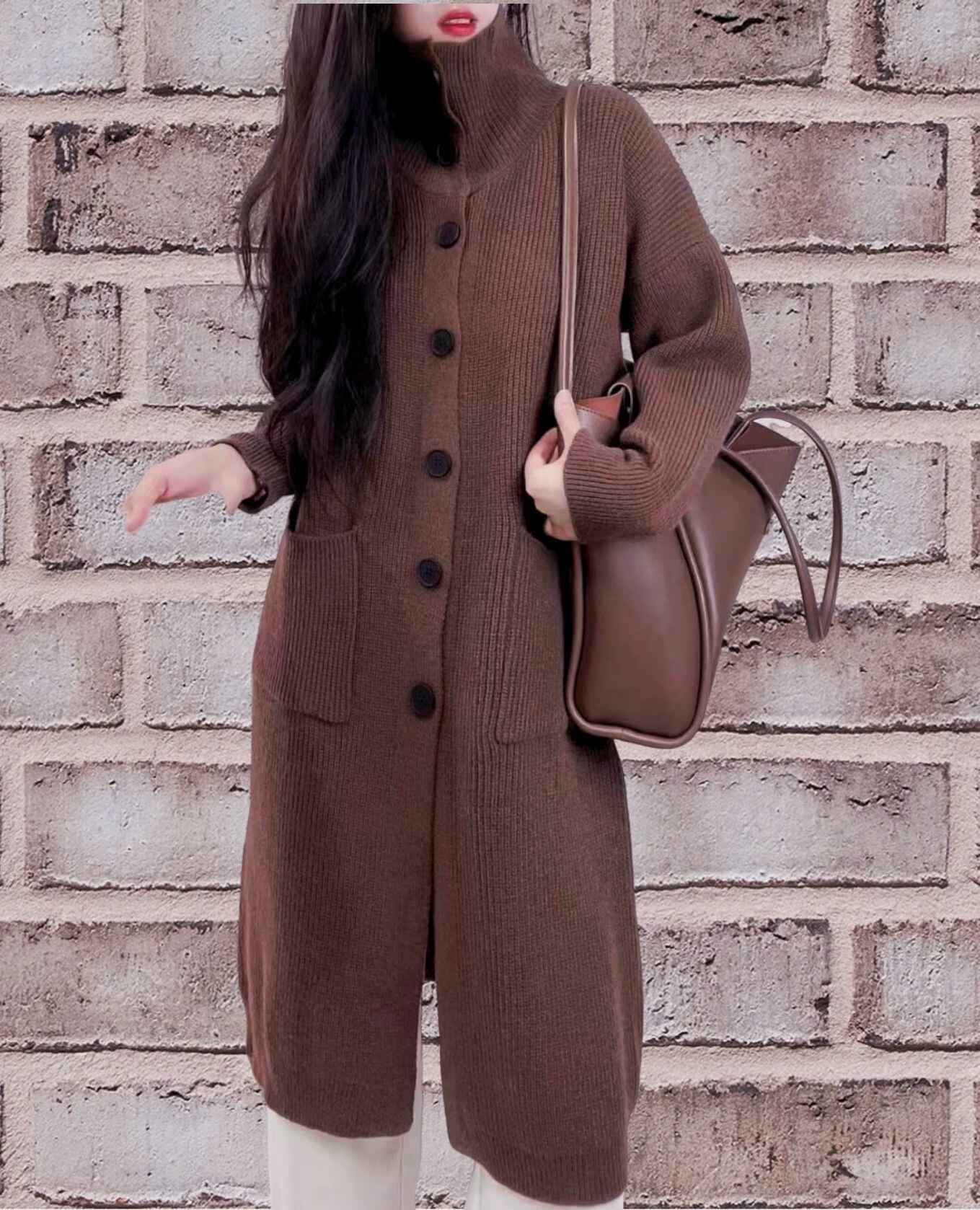 柔らかなリブ編みが魅力のミディ丈カーディガン。