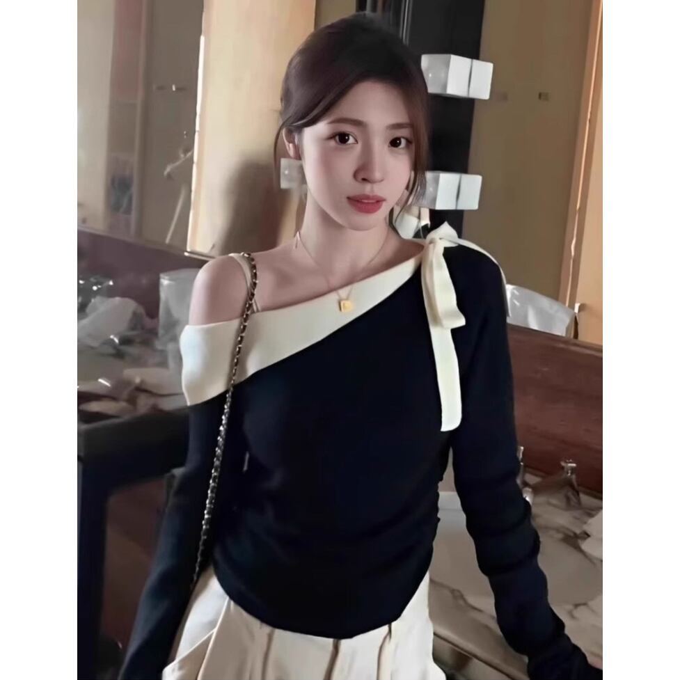 ロングリボンの配色使いがフェミニンなカットソー。気分を高め自分をよりよく見せてくれるトップス。簡単なドレスアップ術をかなえるデザインが親近感のポイント。よそ行きにも対応できる上品な見た目を実現