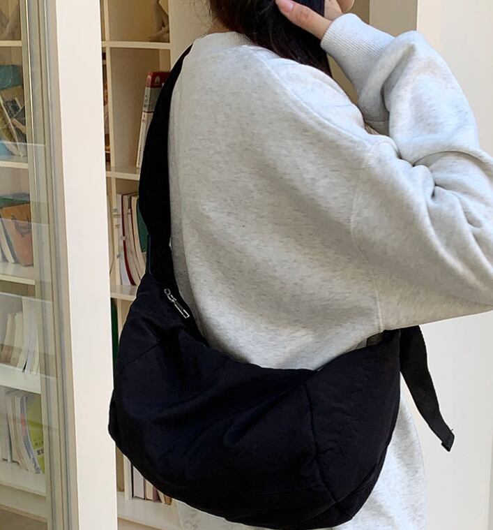 シンプルなデザインの三日月形ショルダーバッグ