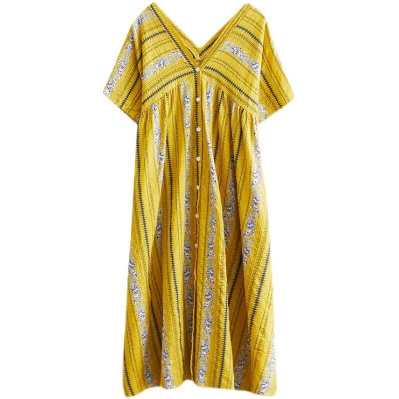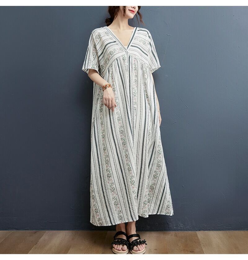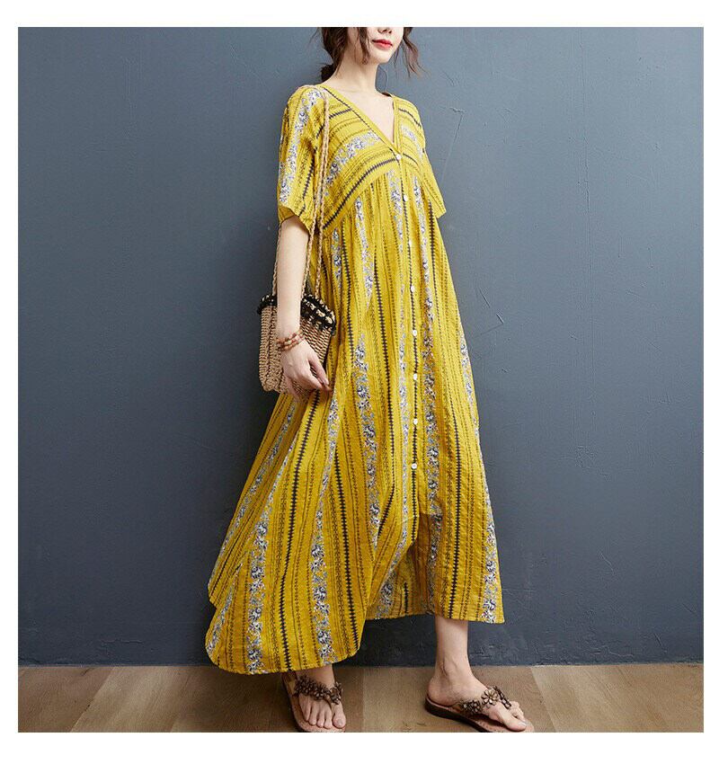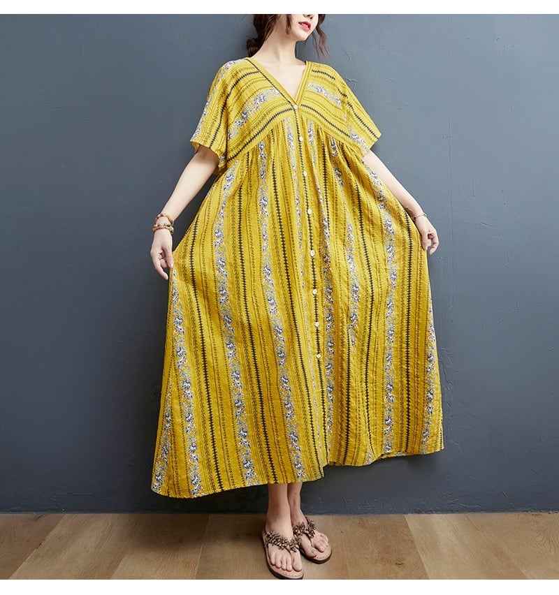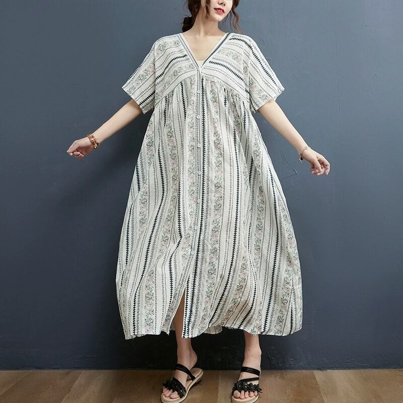 軽やかな前開きデザインが魅力のシャツワンピースは、ノーカラーとVネックですっきりとした抜け感を演出します。