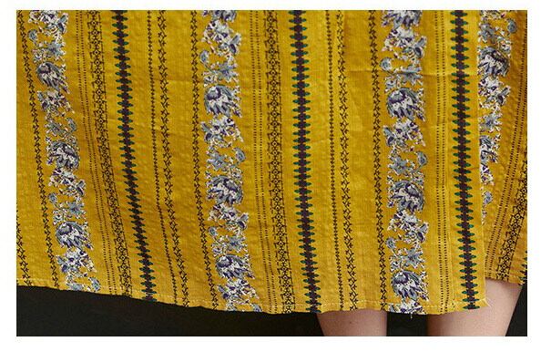 ミモレ丈の上品な長さは大人っぽさを引き立てつつ、総柄デザインが程よい存在感をプラス。