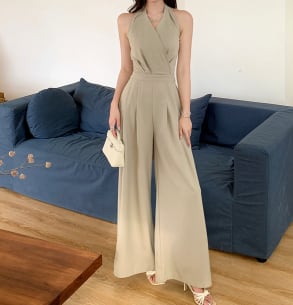 シンプルな無地ながら、ホルターネックの大人っぽさとワイドシルエットのこなれ感で、一枚で主役級の存在感。デートや女子会はもちろん、リゾートやバカンス、カフェでのリラックスシーンにも映える万能アイテムです。