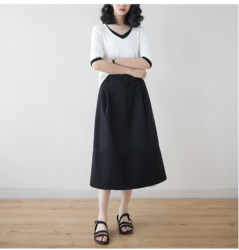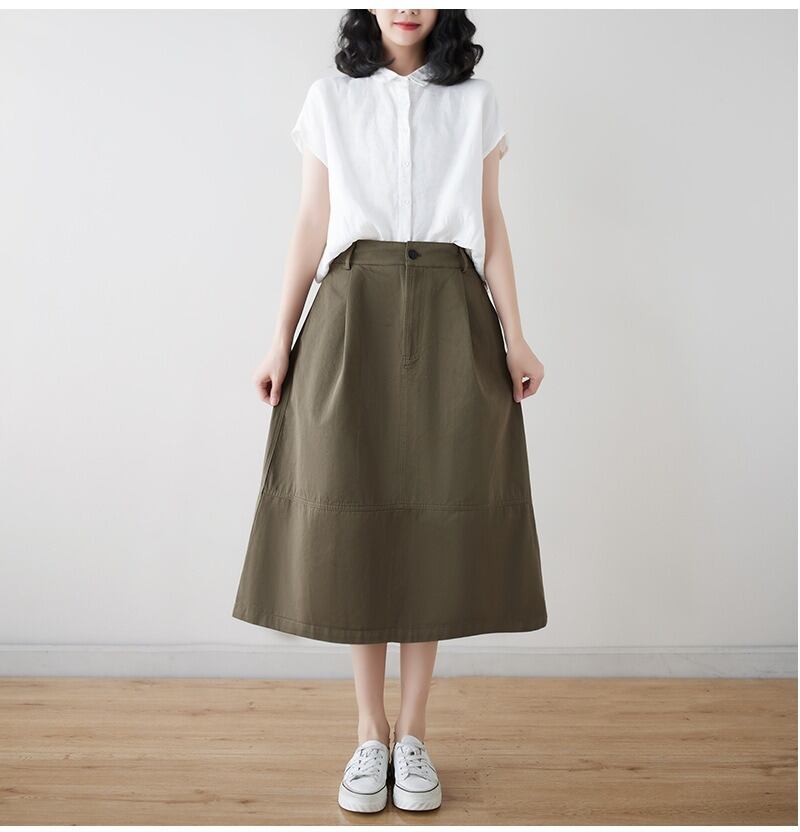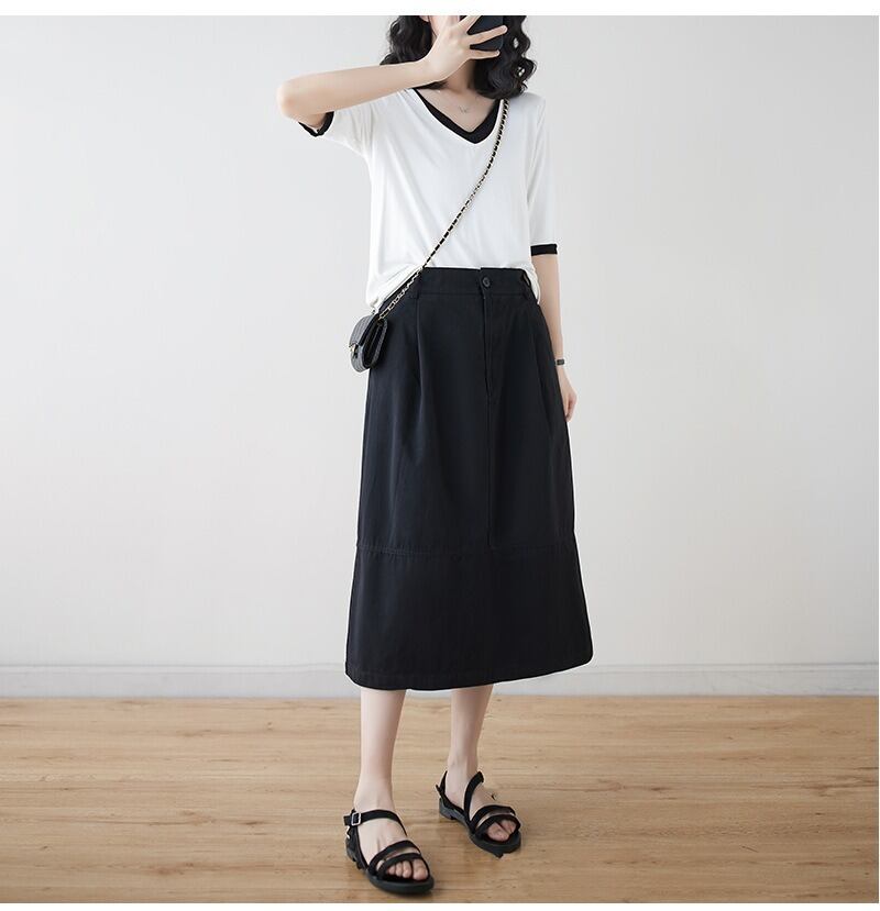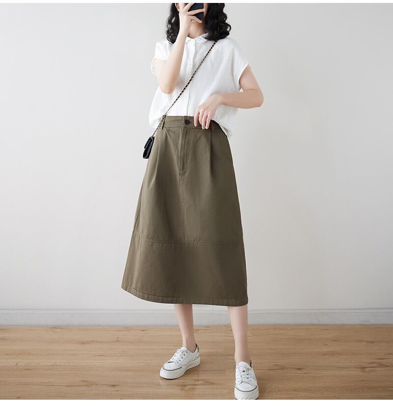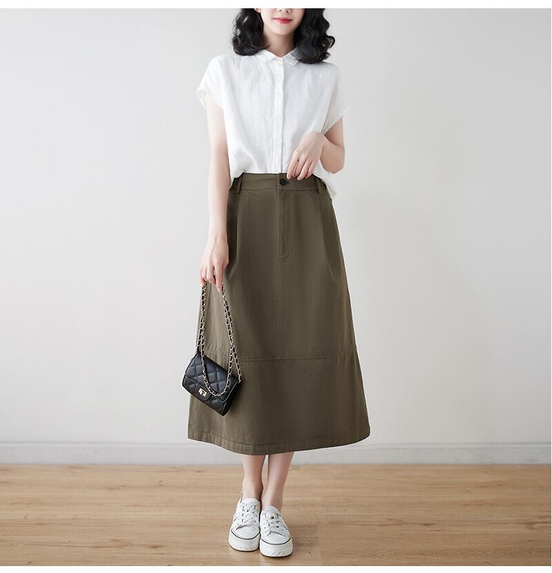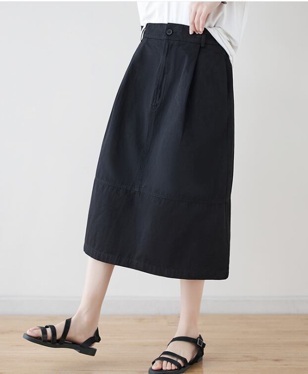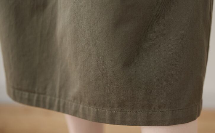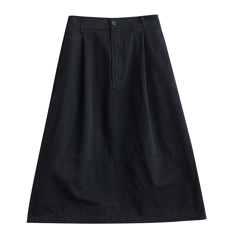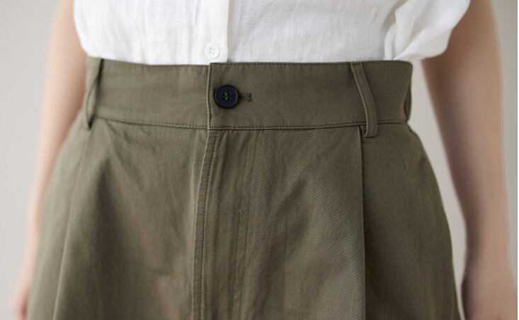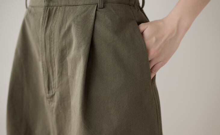 ハイウエストのシルエットがスタイルを良く見せ、体型カバーにも役立ちます。ポケット付きで機能性もあり、カジュアルからきれいめスタイルまで幅広く対応できる一枚です。