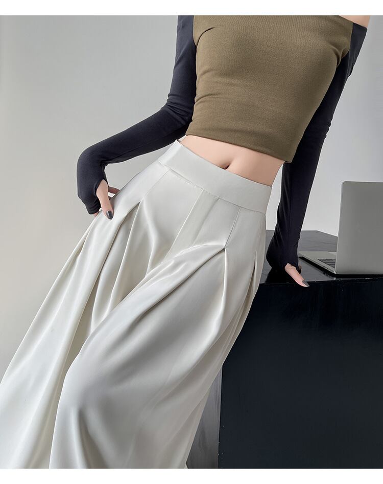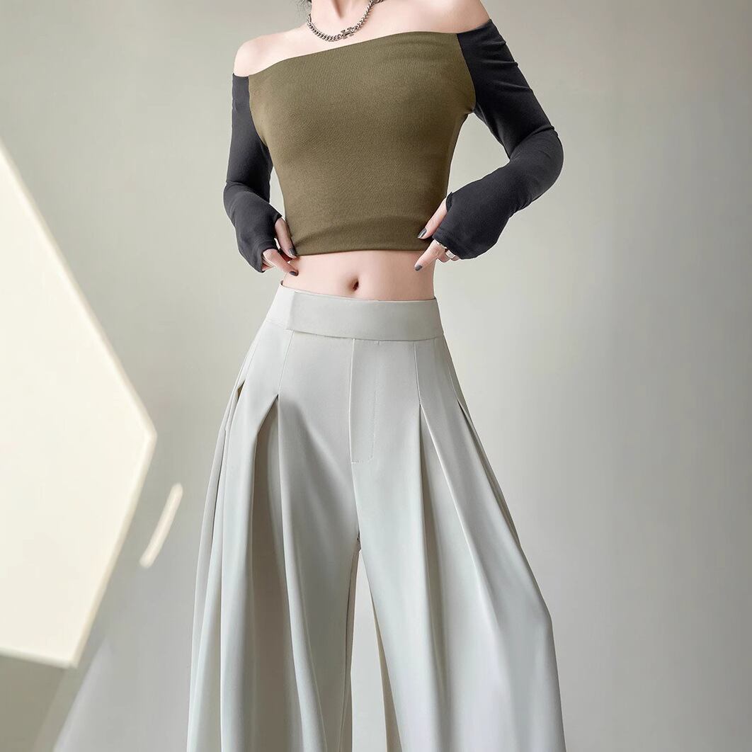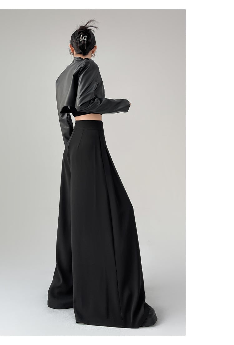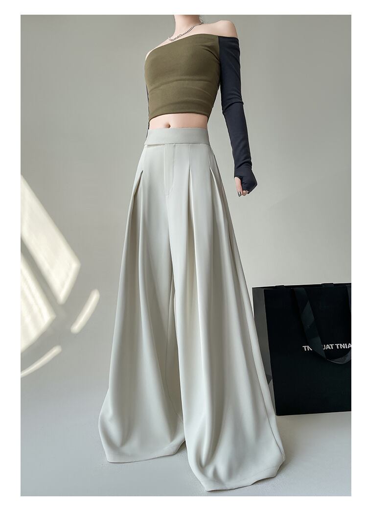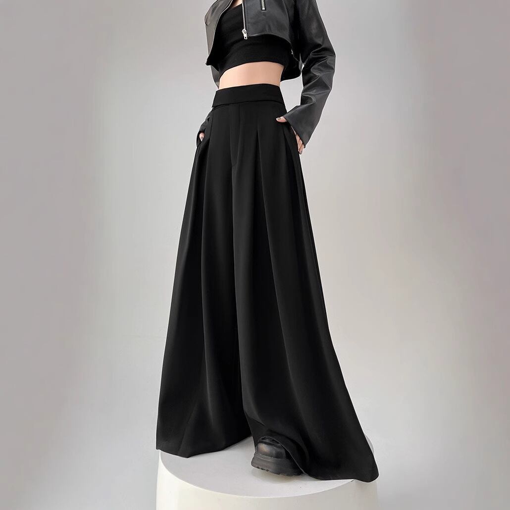 大胆なワイドシルエットが魅力のハイウエストパンツ。落ち感のある生地と深めのタックが縦ラインを強調し、脚をすらりと長く見せてくれます。程よくモードな雰囲気を漂わせながらも、リラックス感のある着心地が魅力です。