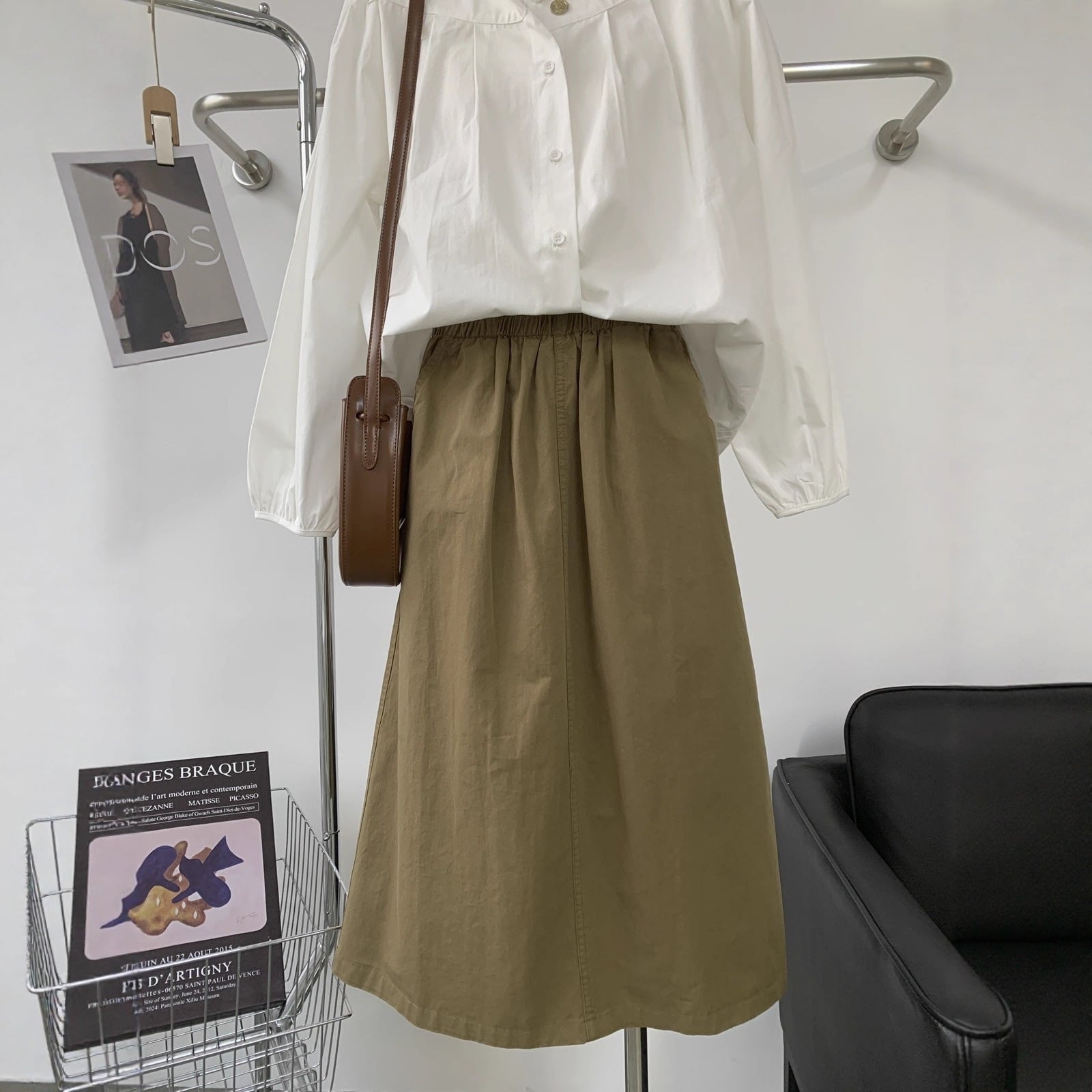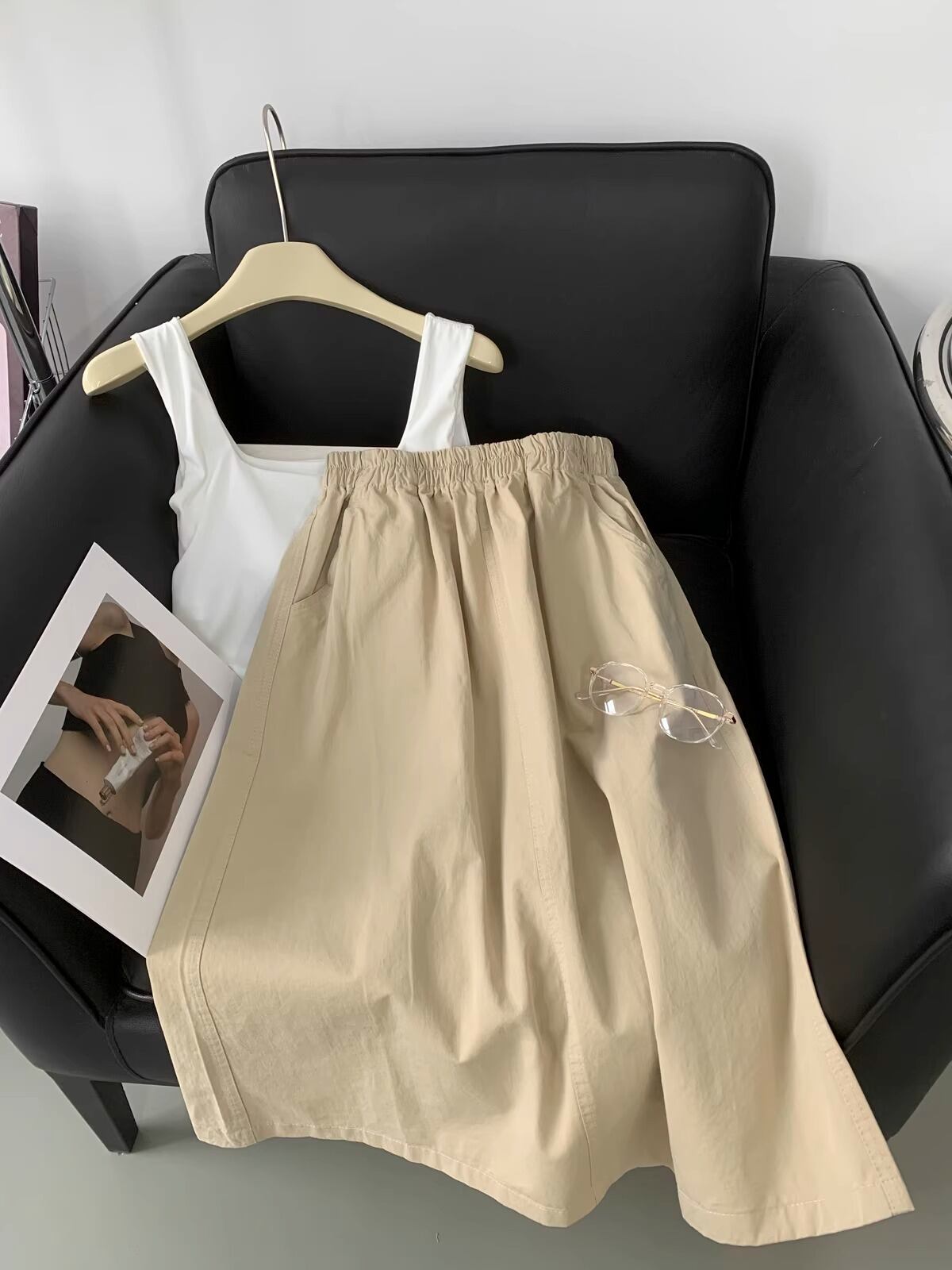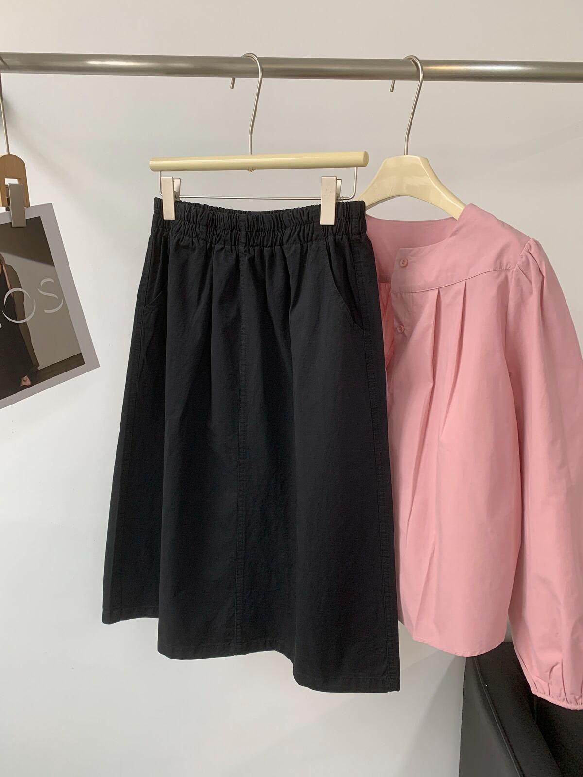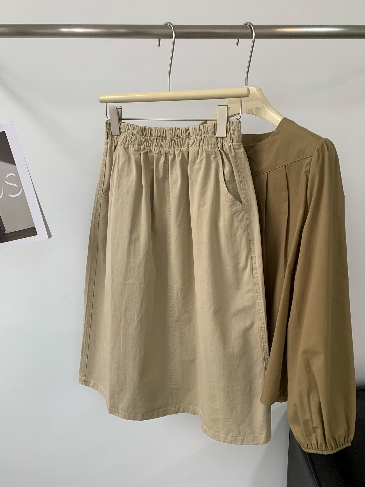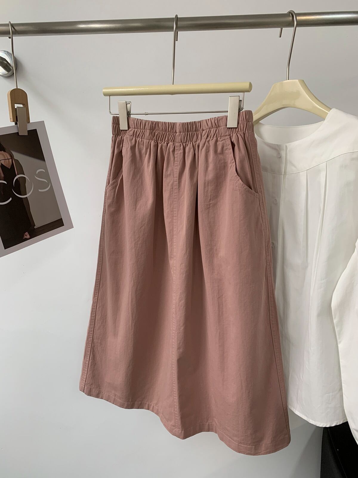 こちらのスカートは、ウエストゴムとポケット付きで、使い勝手抜群。