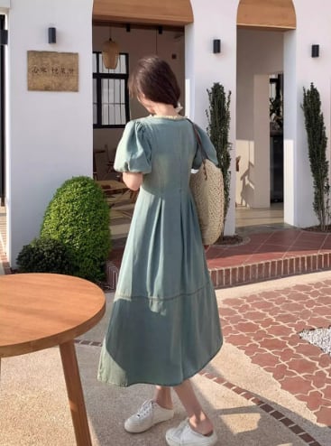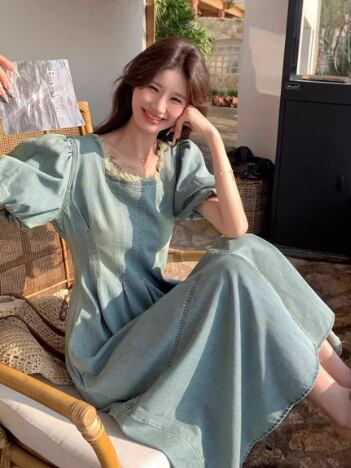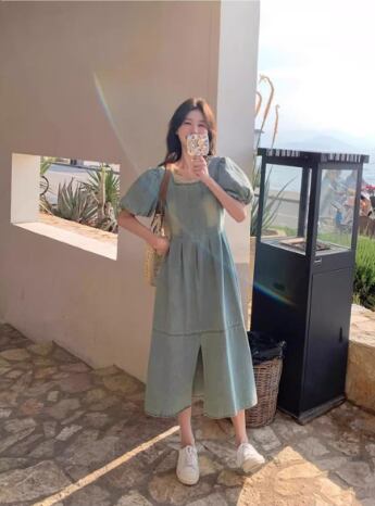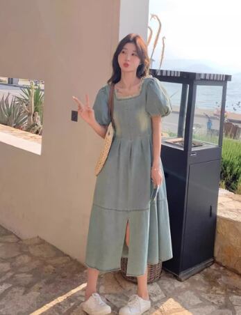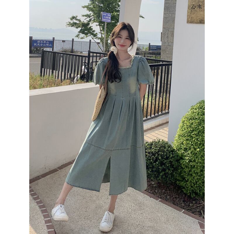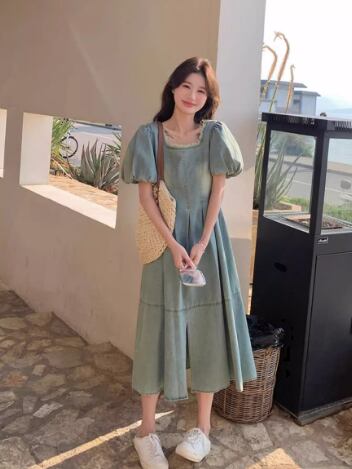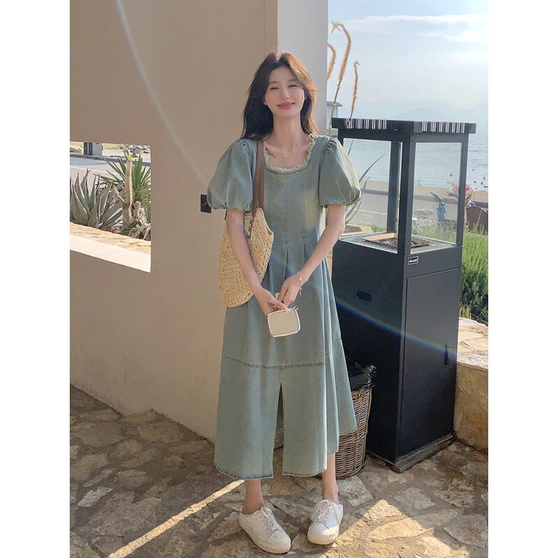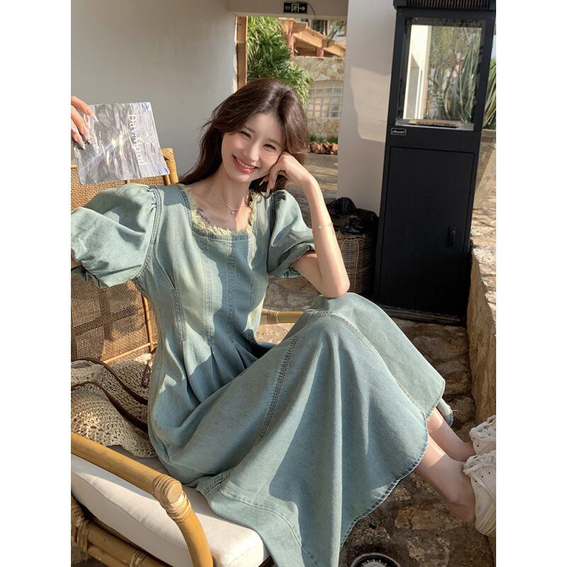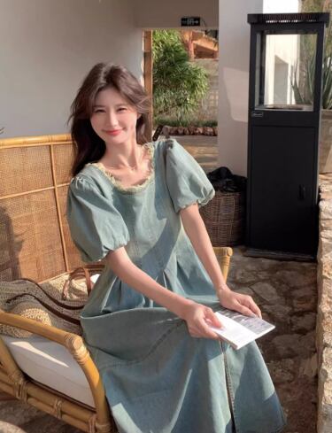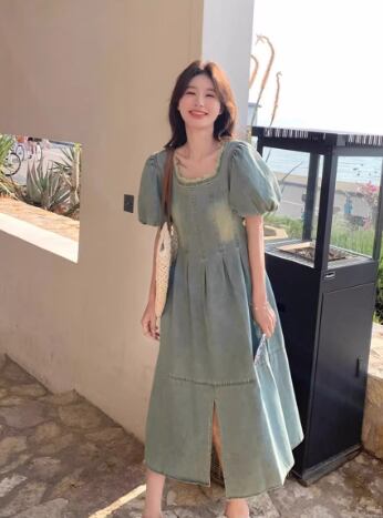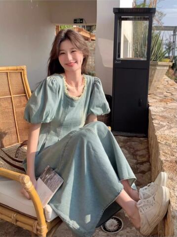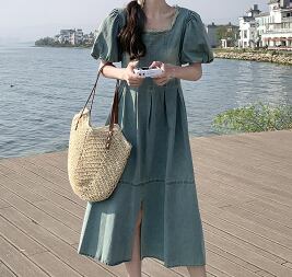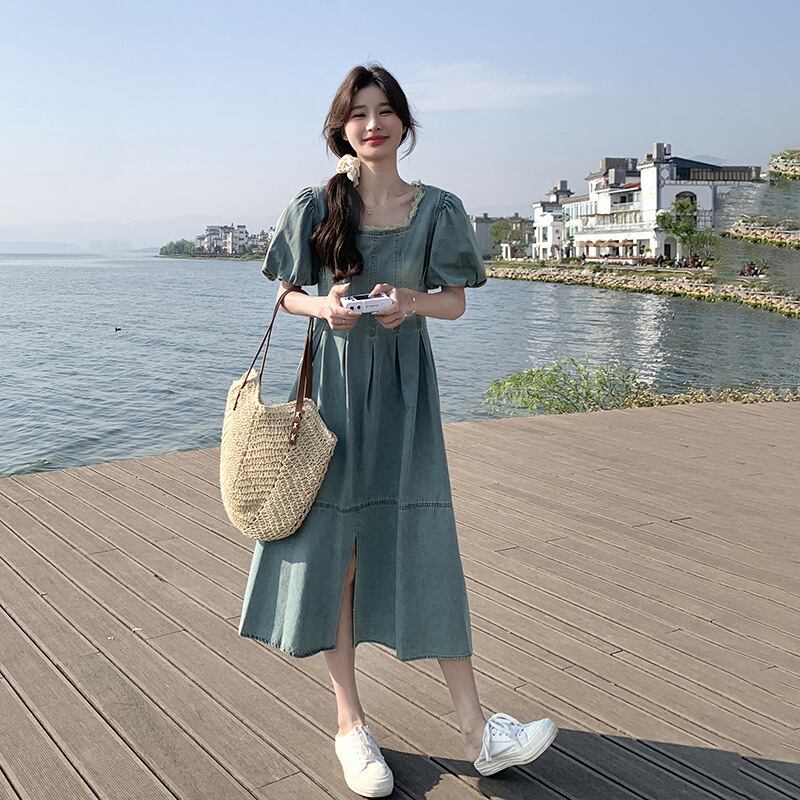 爽やかな湖畔に映える、デイリーに着たいパフスリーブのデニムワンピース。スクエアネックでデコルテをすっきり見せ、ふんわり袖が女性らしいやわらかな雰囲気をプラスします。ウエスト切り替えとフロントスリットでスタイルアップ効果も期待でき、動きやすさも兼ね備えています。