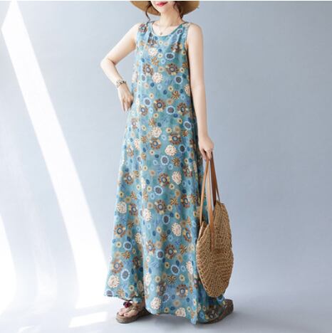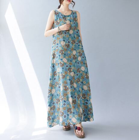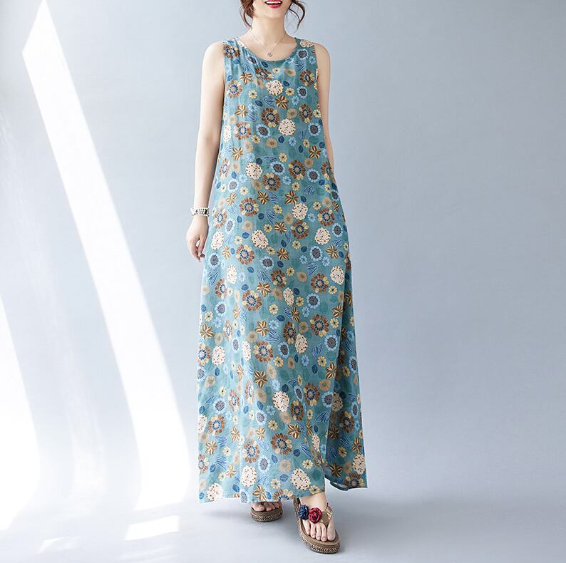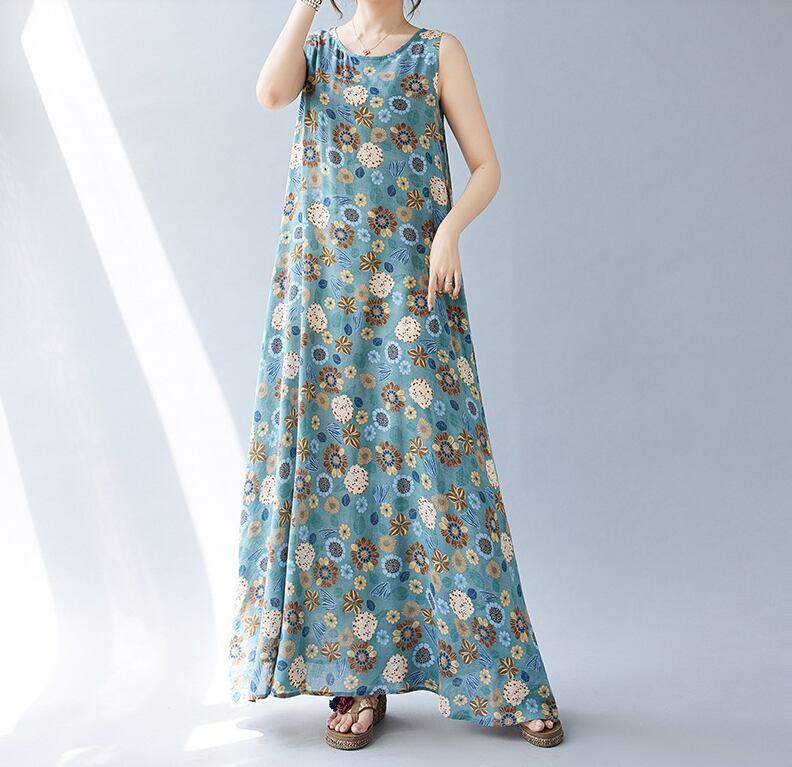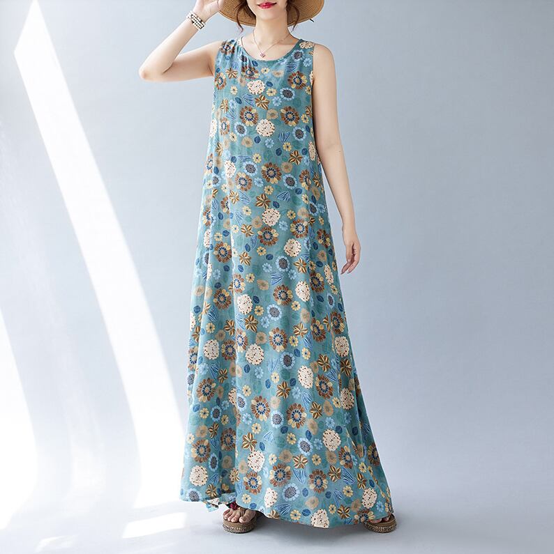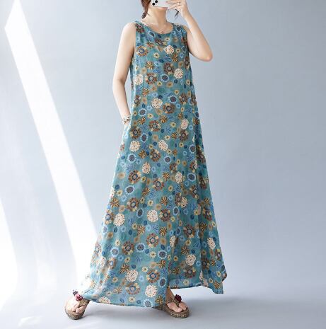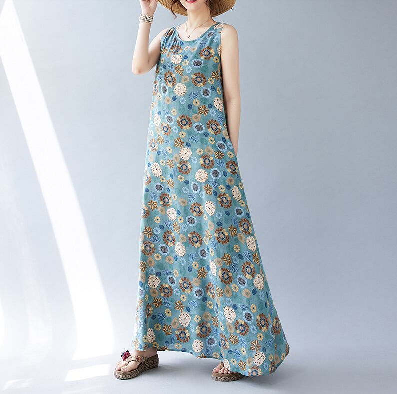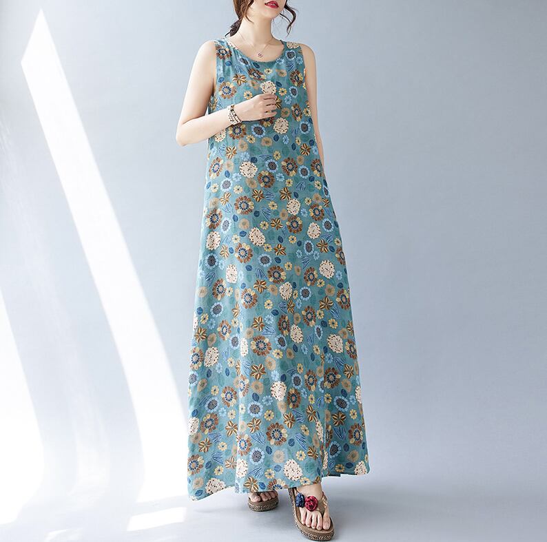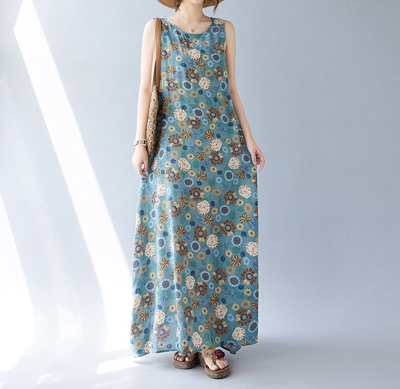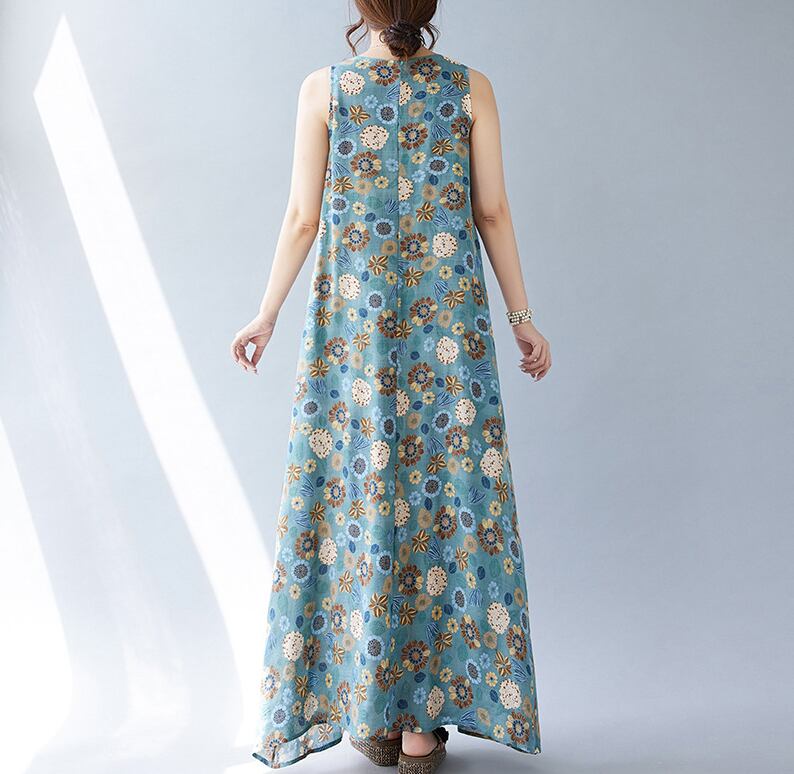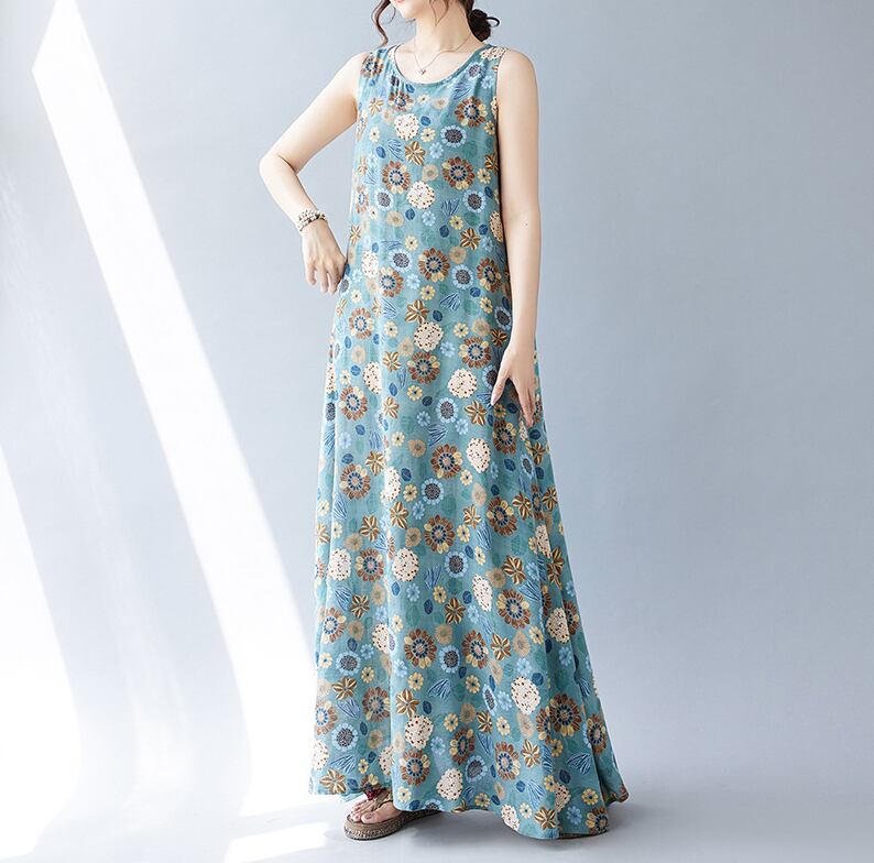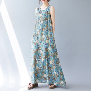 レトロな花柄がかわいいマキシ丈ワンピース