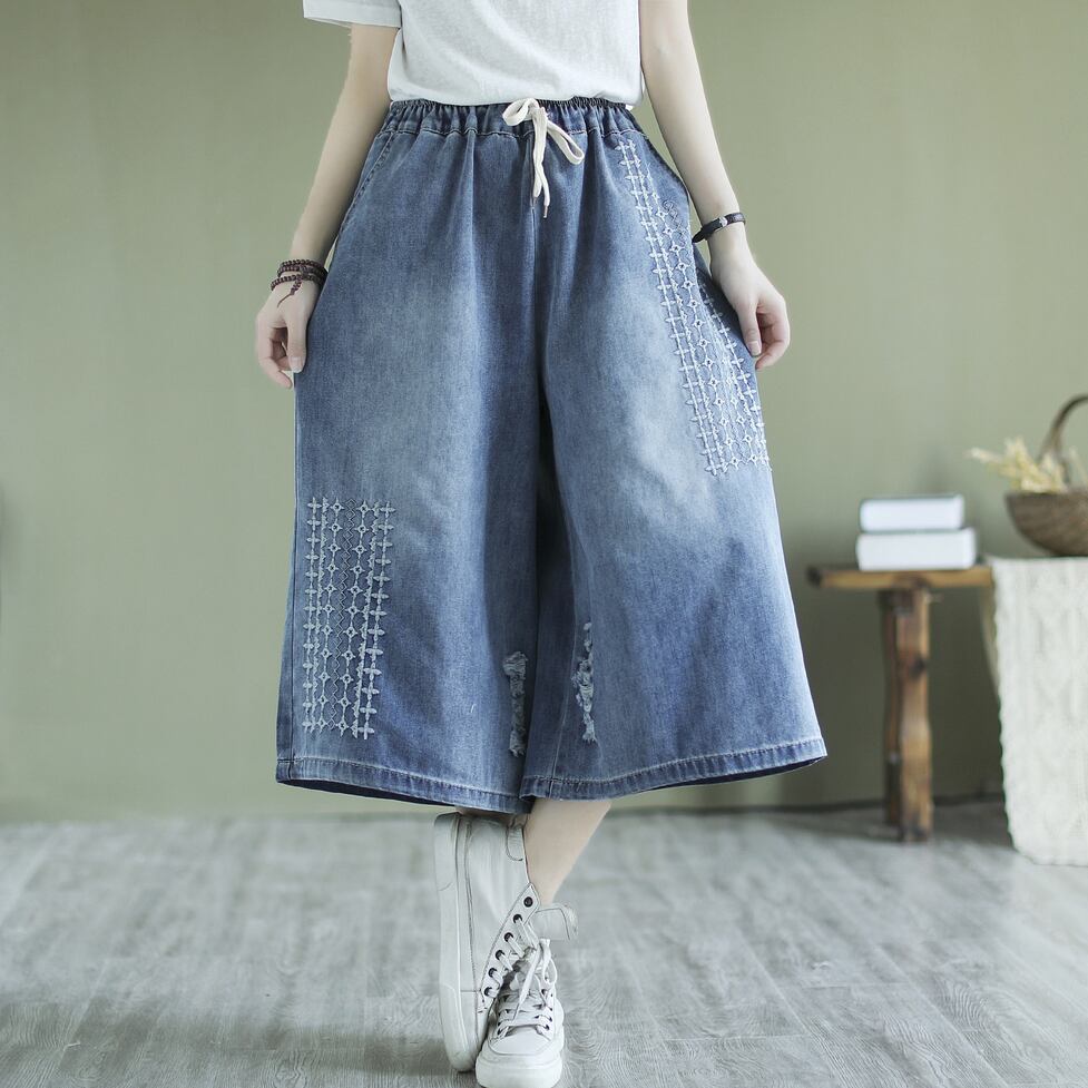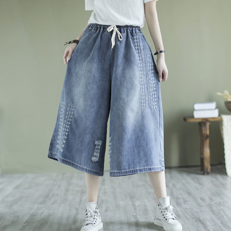 ステッチとダメージを施しレトロな存在感を演出したデニムパンツ。たっぷりとしたワイドをウエストのひもで結んで構築的なシルエットを創生。ロップド丈で足元のアレンジもしやすい