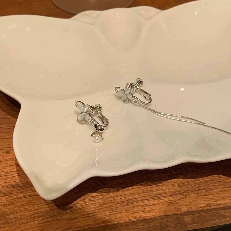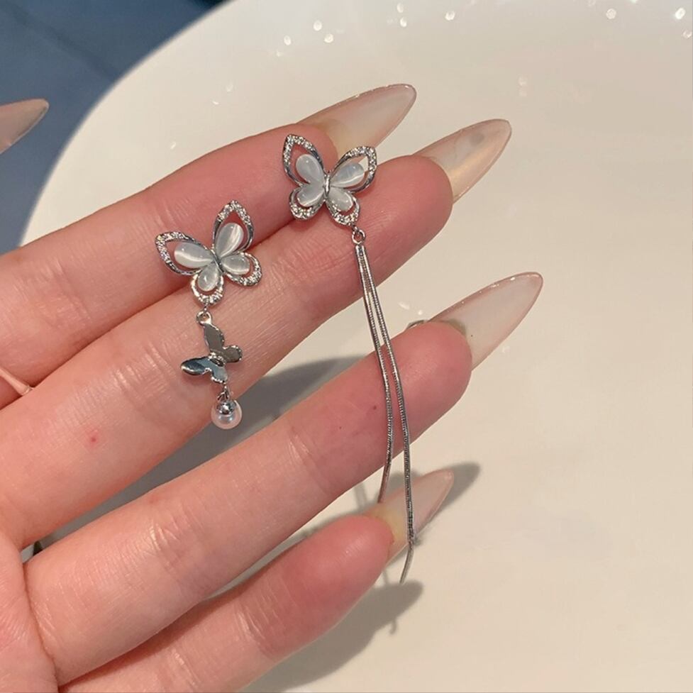 蝶々のモチーフで透明感のあるストーンにチャームとロングタイプのアシンメトリーセット。