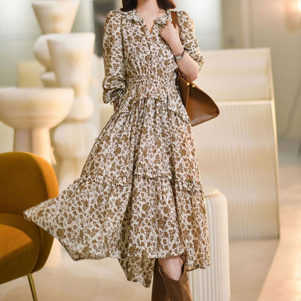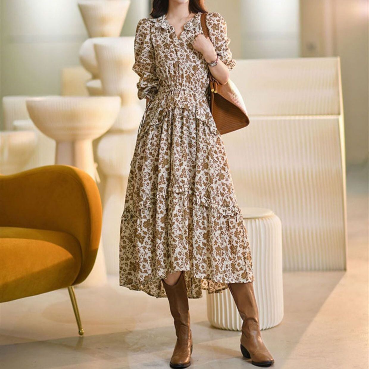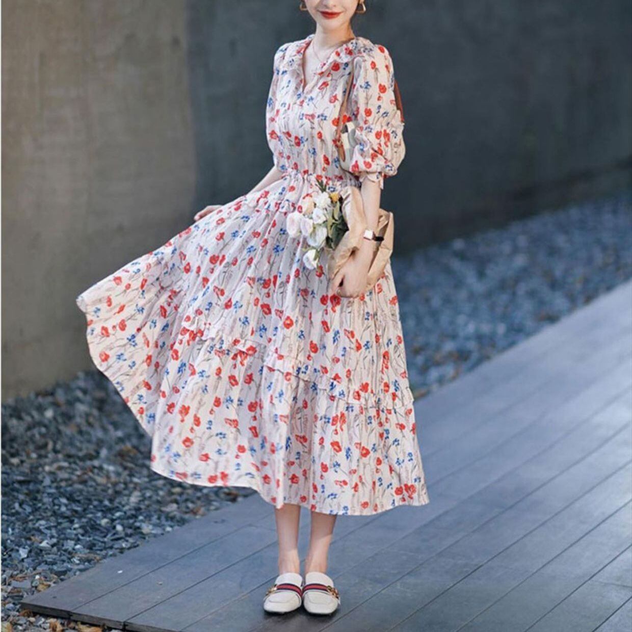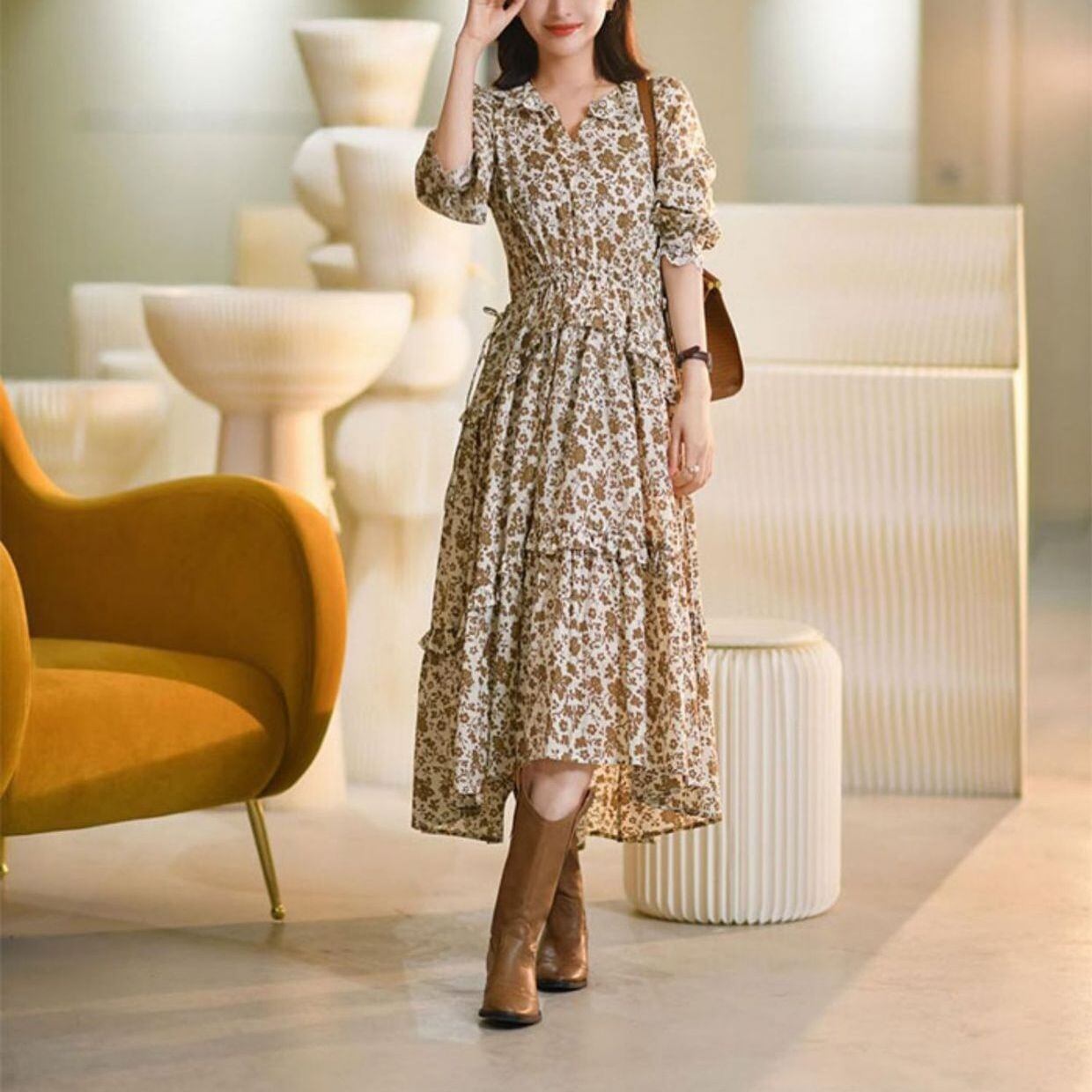 ふんわり広がるAラインシルエットに、ティアードデザインとギャザーを効かせたフェミニンなワンピースです。