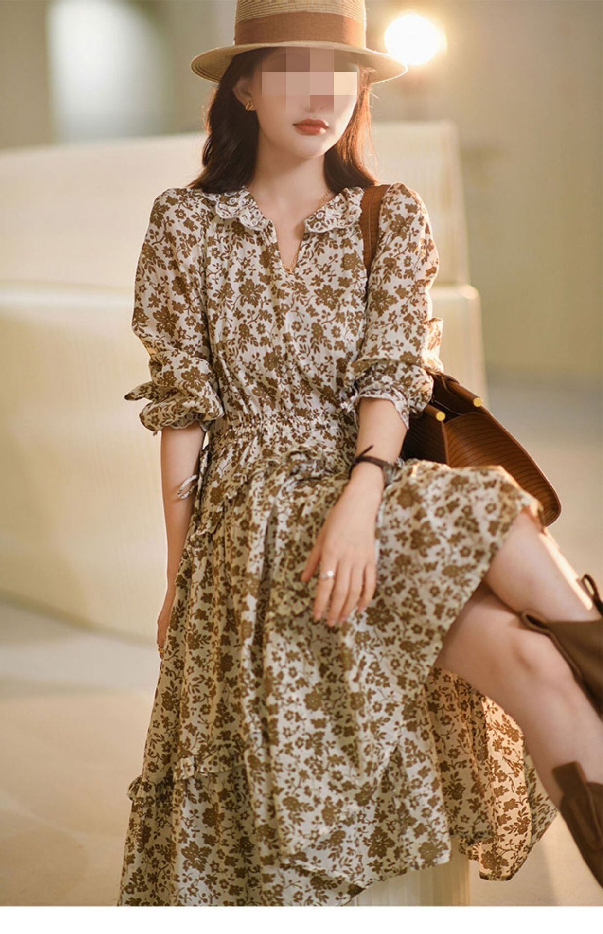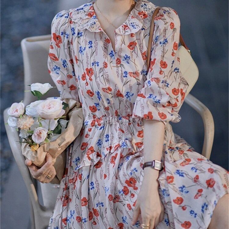 襟付きのきちんと感とフリルの愛らしさが絶妙にマッチし、大人可愛い雰囲気を演出します。