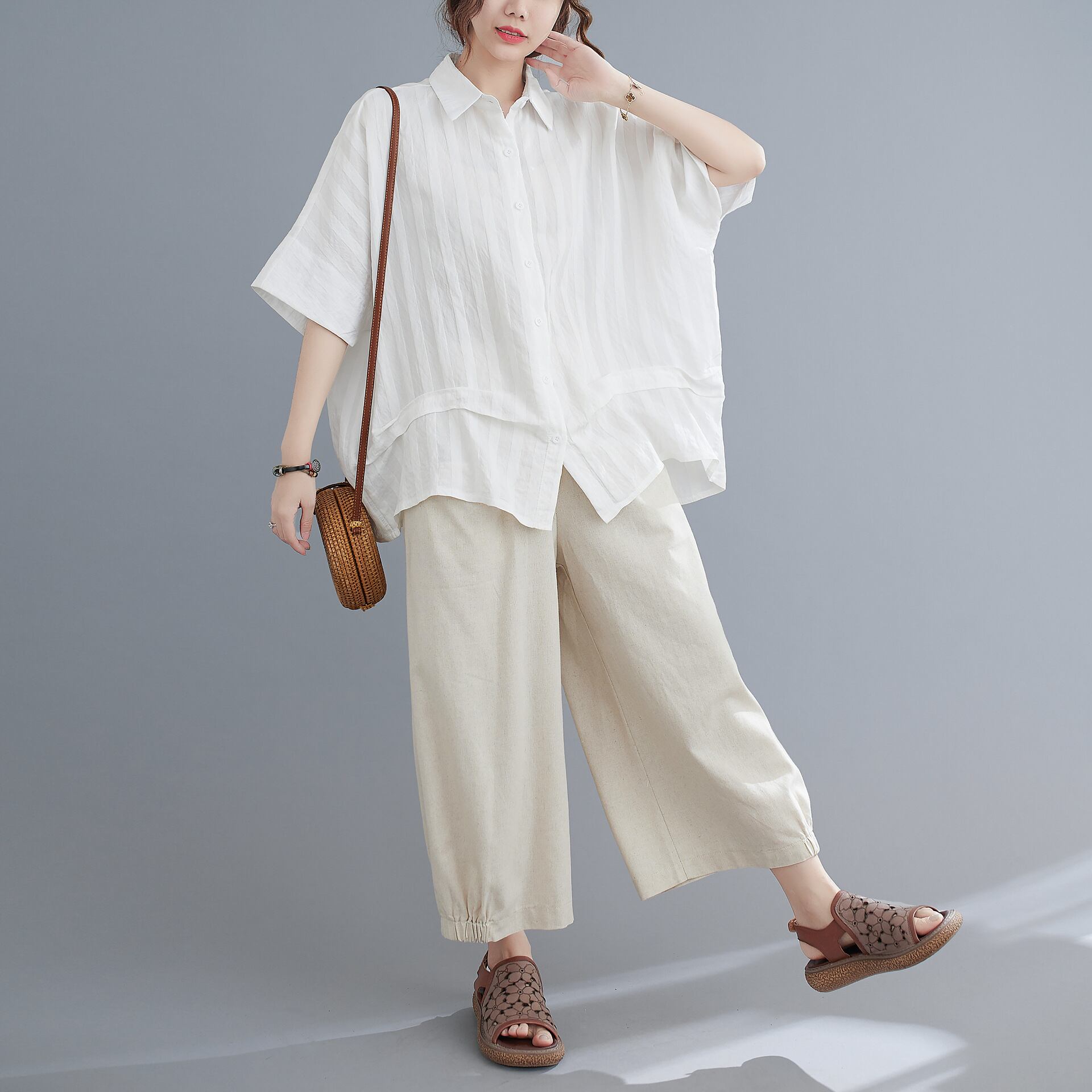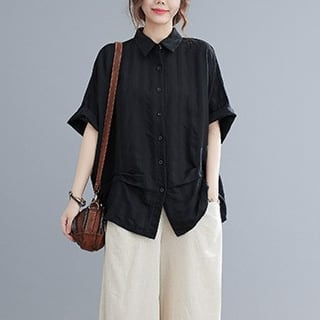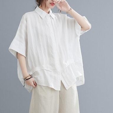 おしゃれで快適な着心地のシャツ。ゆったりとしたラフなシルエットが特徴で、大人可愛い雰囲気を引き立てます。襟付きの角襟デザインにさりげない刺繍が施されており、シンプルながらもおしゃれ感満載です。透け感のある薄手のコットン素材で、春から秋までロングシーズン活躍間違いなし!