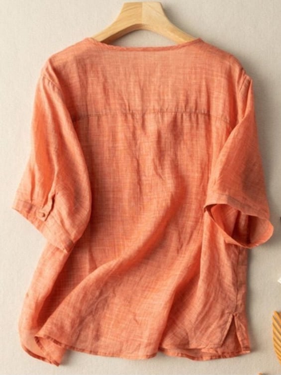 大人可愛い印象を与える、シャツブラウスが登場しました!Vネックデザインが、顔回りをすっきり見せてくれます。ふんわりとしたシルエットで気になる体型もしっかりカバー。着心地の良い素材で普段使いからお出かけまで幅広く活躍するアイテムです。