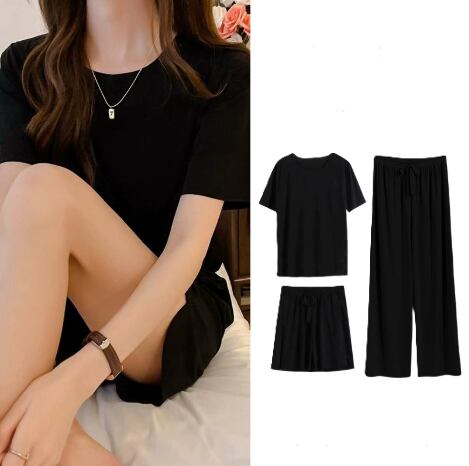 トップス、ショートパンツ、ロングパンツの3点セットで