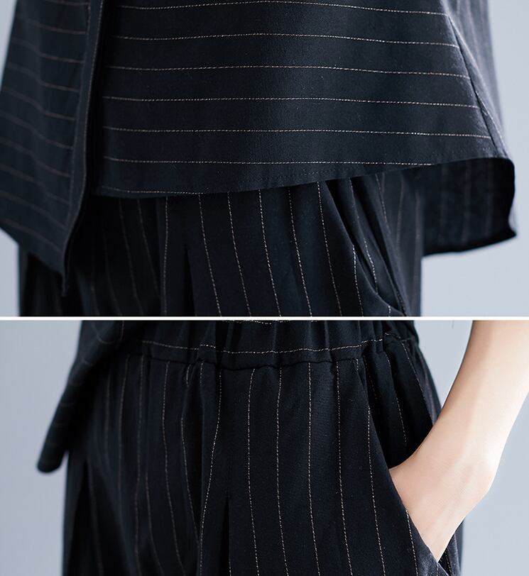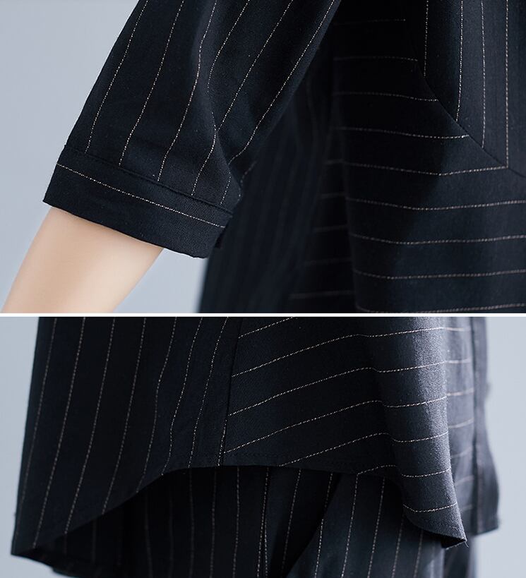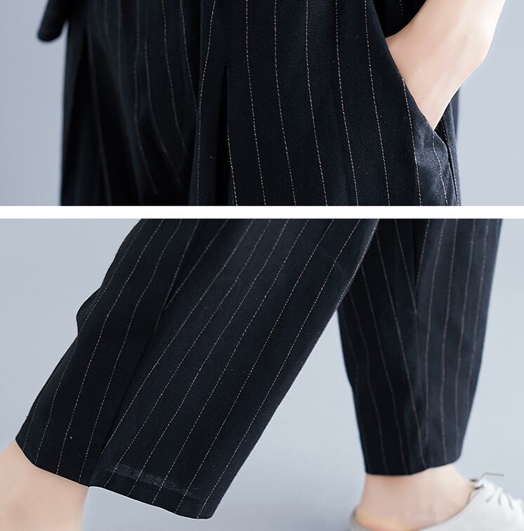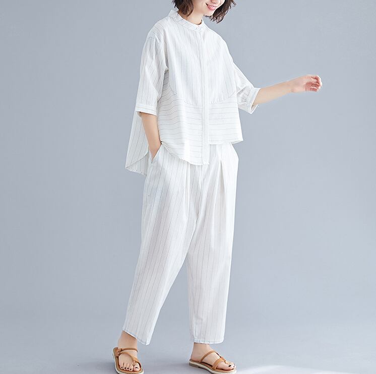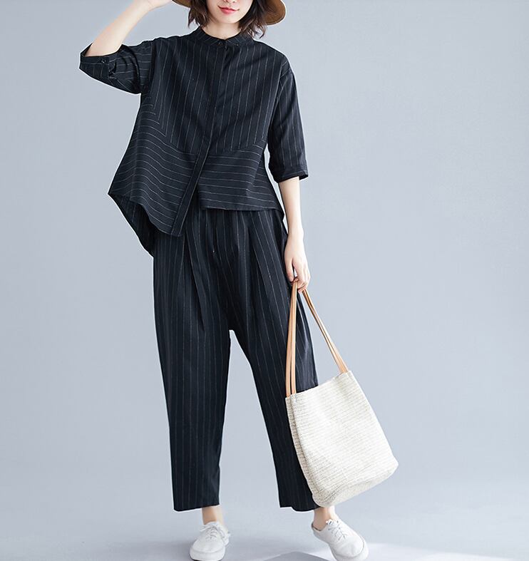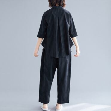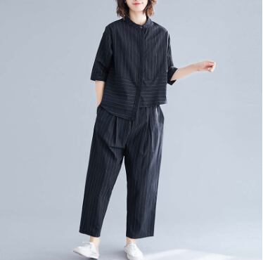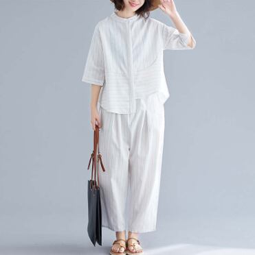 七分袖のシャツとワイドパンツのセットアップ