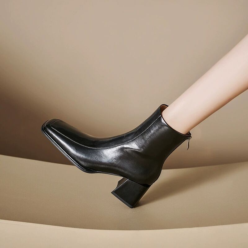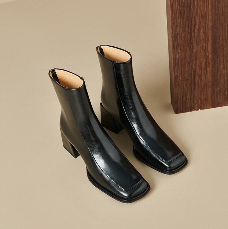 安定感のある太ヒールで歩きやすく、スクエアトゥのデザインがクラシックかつシックな印象を演出します。
