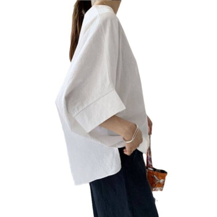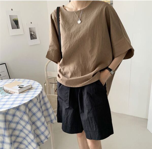 クルーネックと5分袖のデザインが、シンプルながらも洗練された印象を与え、普段使いはもちろん、通勤やお出かけにもぴったりな一枚。