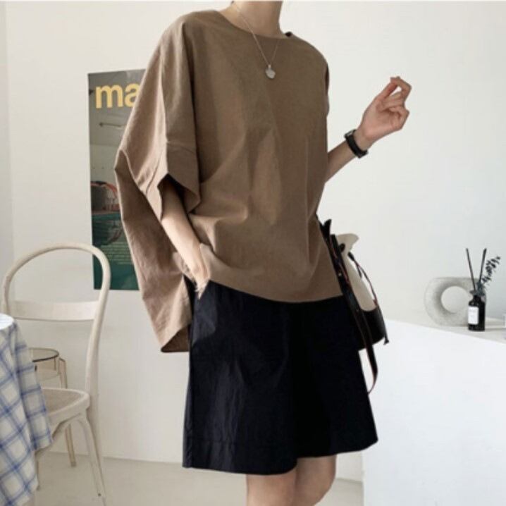 ルーズなシルエットが体型をカバーし、どんなスタイリングにも合わせやすいベーシックなアイテムです。