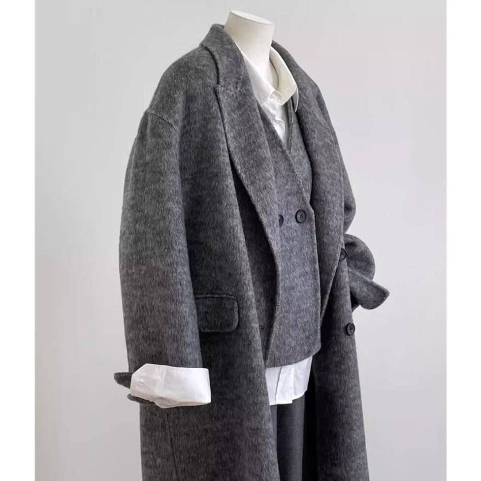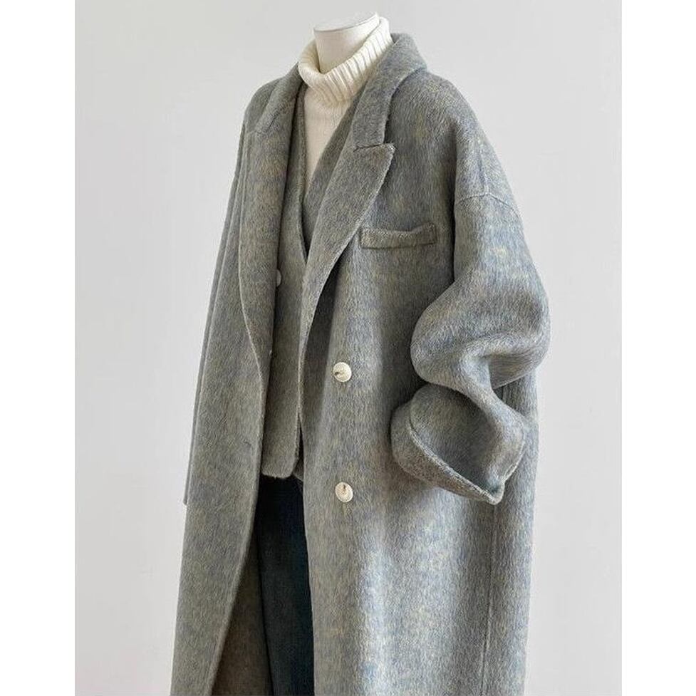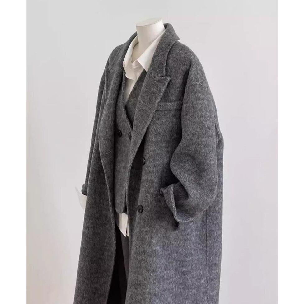 オーバーサイズでしっかり着込めるロングコート。大人のさじ加減に落とし込むために強気なマインドで向き合う。都会的な洗練と肩の力の抜けた女性らしさを両立。ハンサムなスタイルの延長でとり込めば端正に
