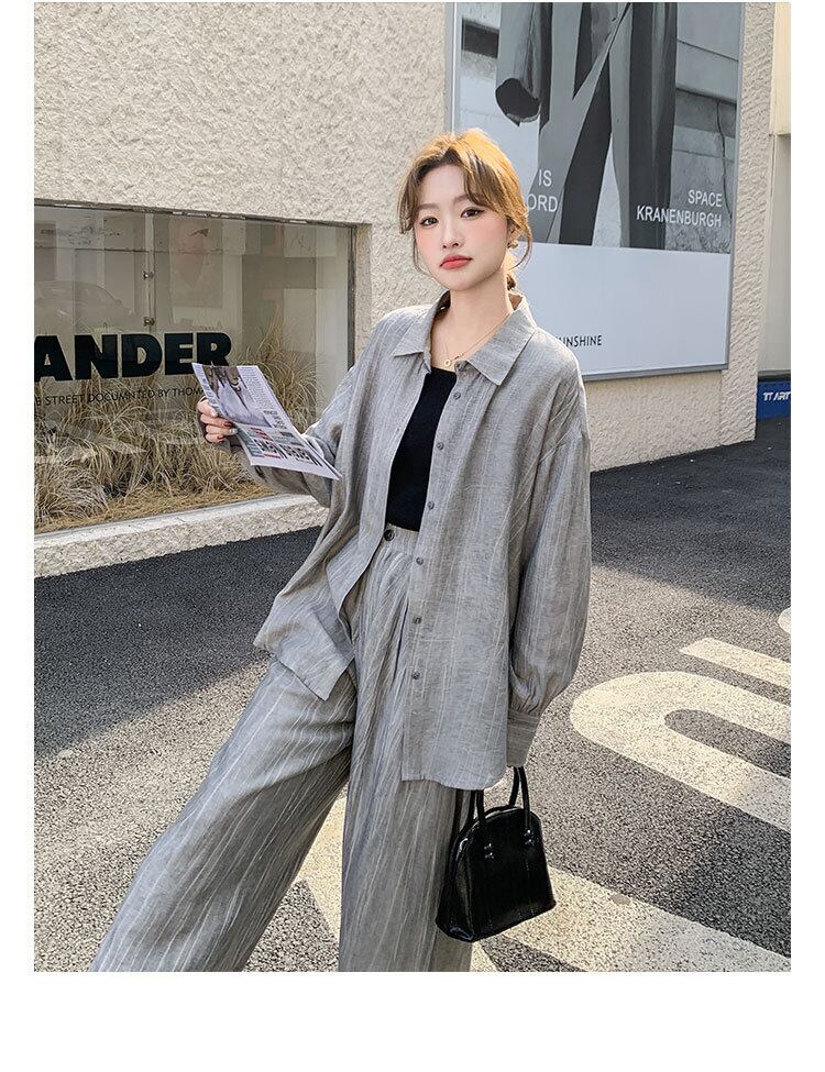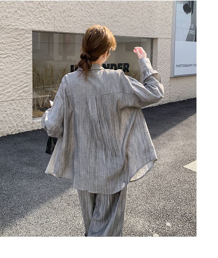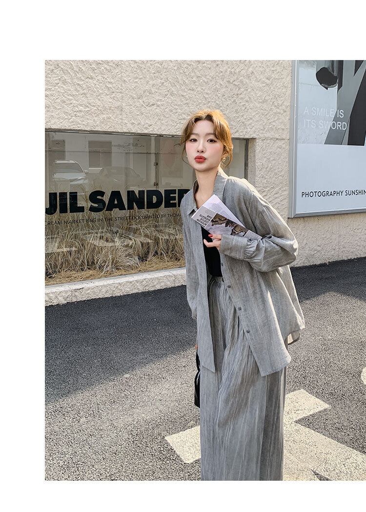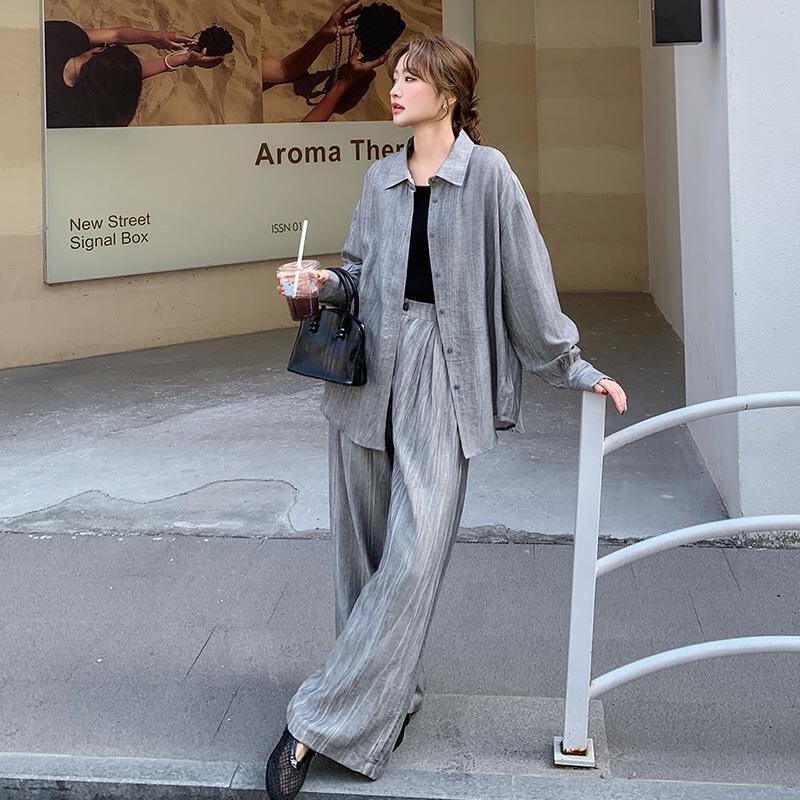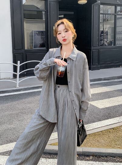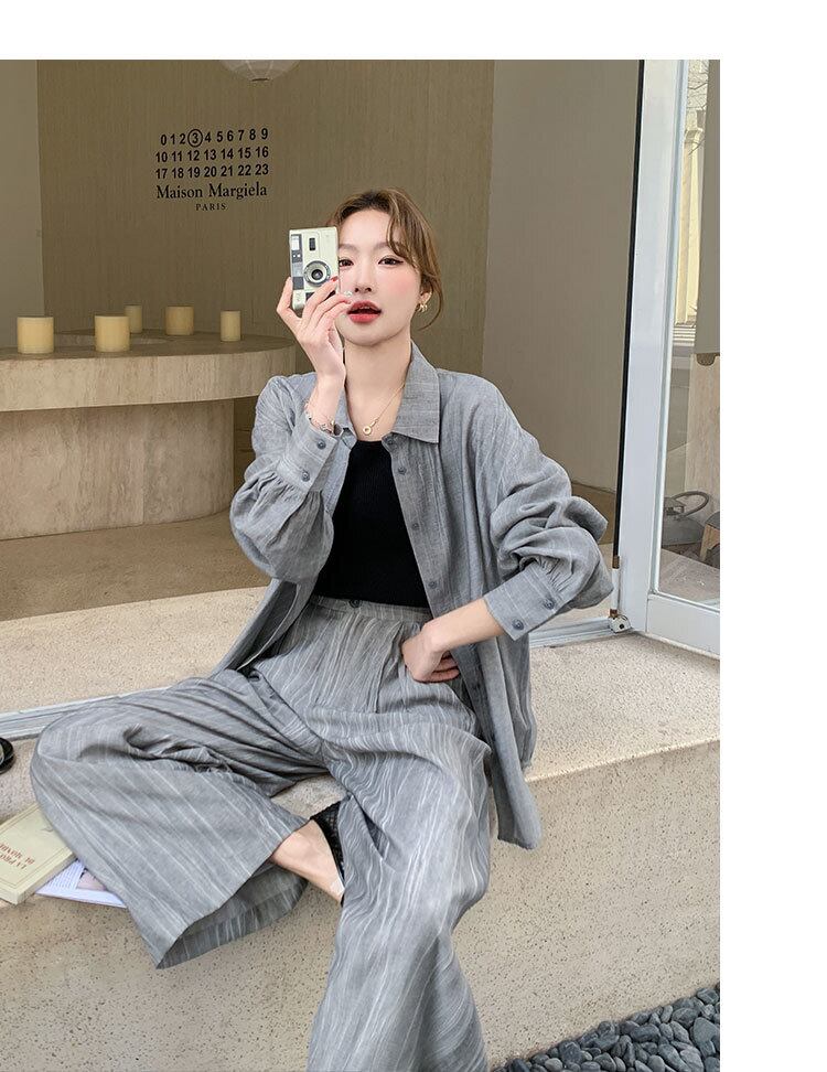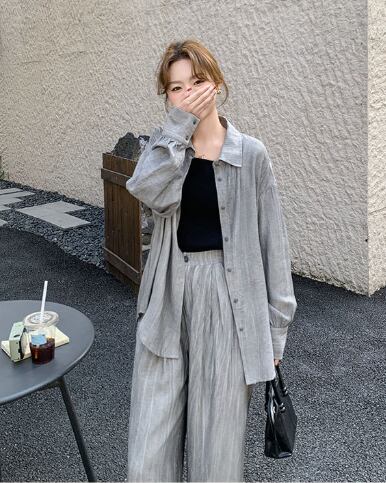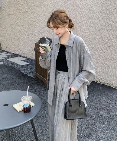 シンプルながらも存在感を放つ、レディース用パンツ&シャツのロングセットアップです。角襟シャツとストレートワイドパンツの組み合わせが、メンズライクなかっこよさと女性らしい抜け感を両立。ボタンやポケット付きで実用性も高く、ラフに羽織るだけでこなれ感のあるスタイルが完成します。