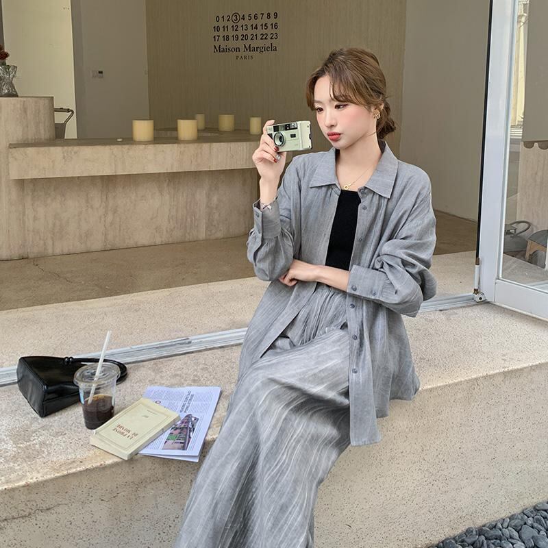 無地の落ち着いたグレーカラーは、大人っぽさを引き立てつつ幅広いシーンにマッチ。体型カバーや脚長効果も期待でき、デイリーから旅行・ライブまで着回し力抜群です。ベーシックながら主役級に映える、トレンド感あふれる一着です。