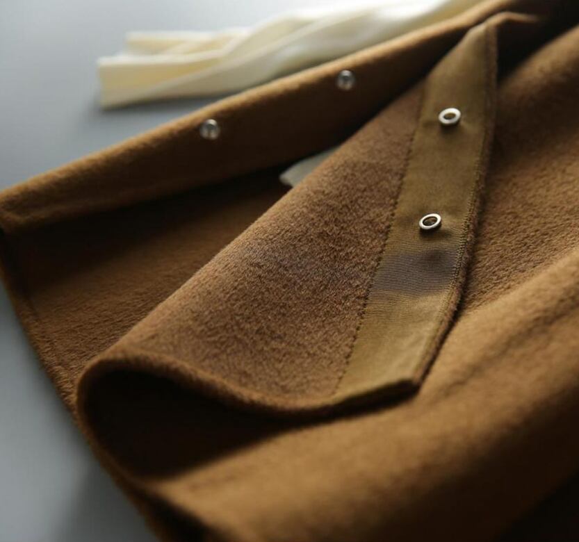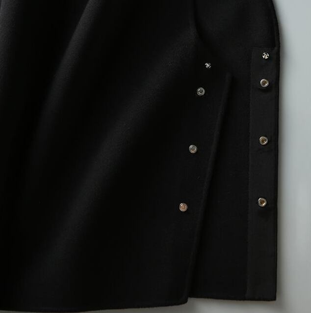 サイドはボタンで開閉できるので、様々なボトムス合わせが楽しめます