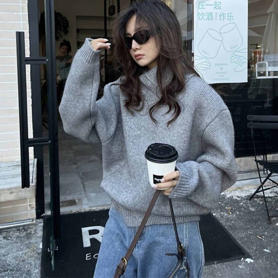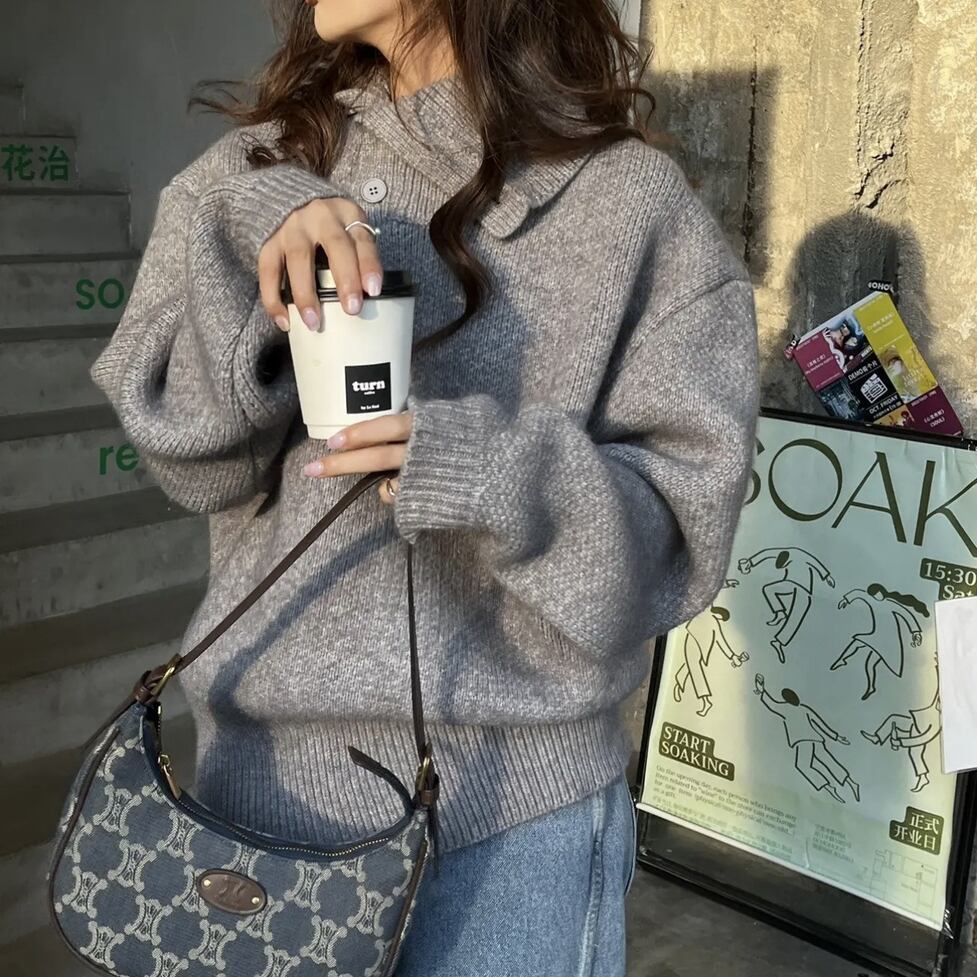 オーバーサイズのニットとワイドデニムのセットアップ。切れ味よくカジュアルからハンサムに転換。