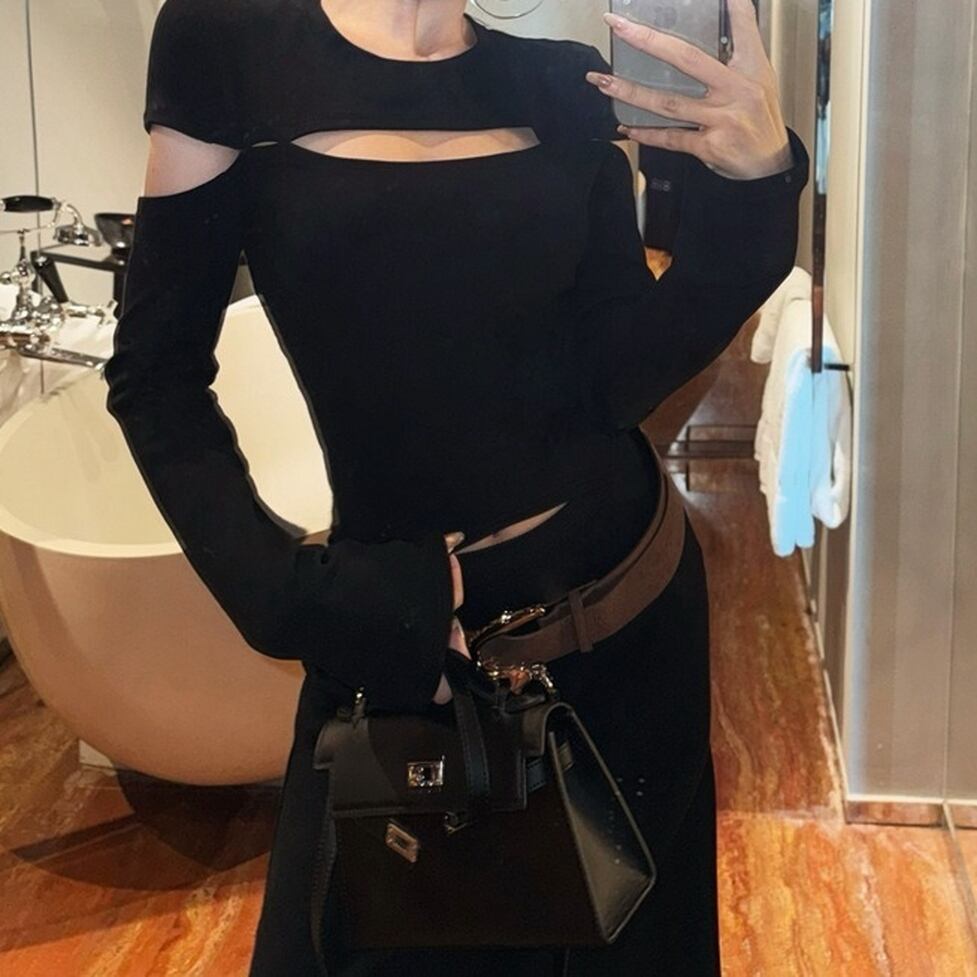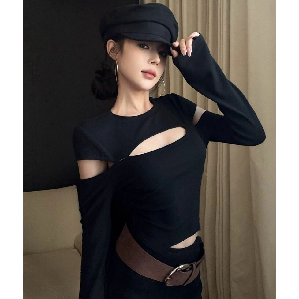 カッティングのデザインがポイントのトップス。メリハリが華奢見えを実現。動きも生まれ細身なのに疲れない理想のバランスへ。奥行きのあるスタイルへ大人化を図って。