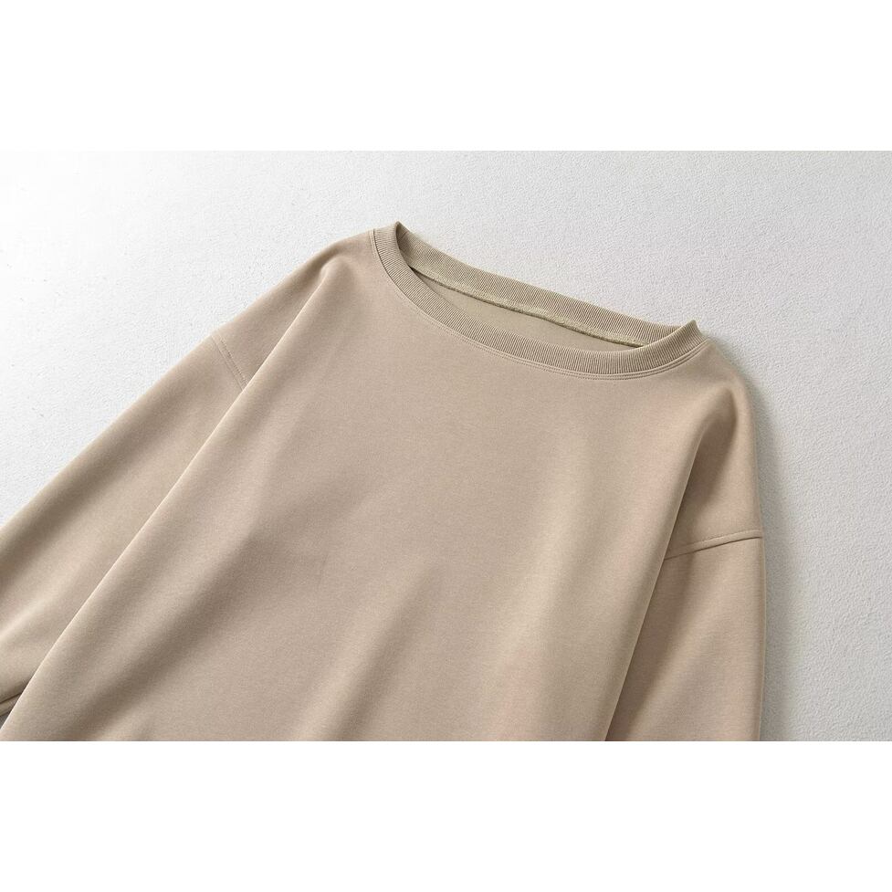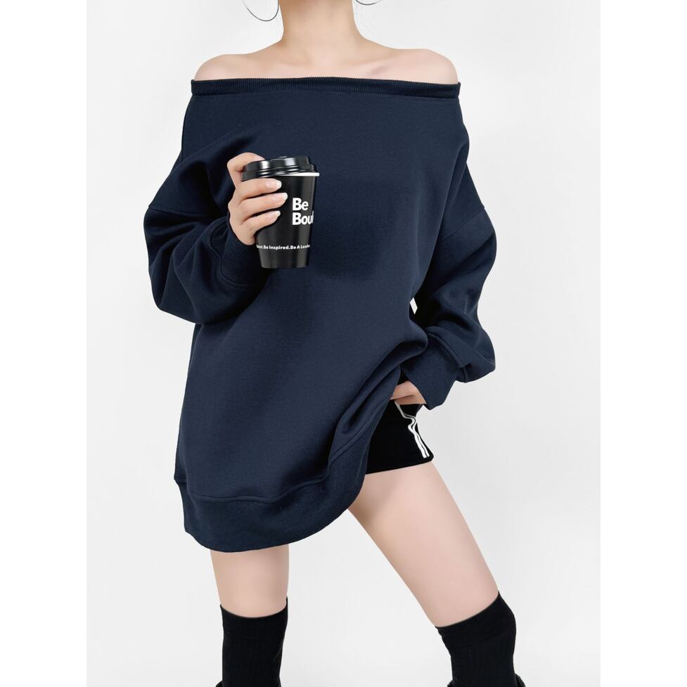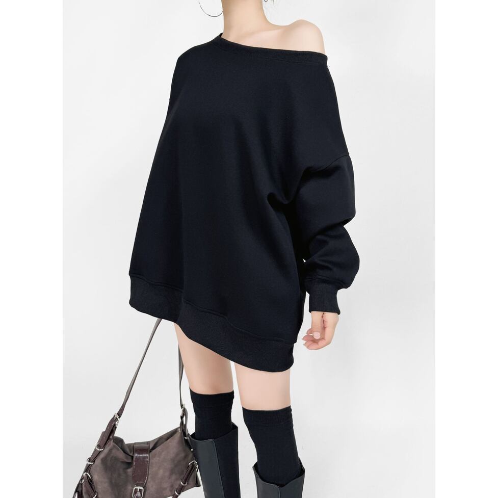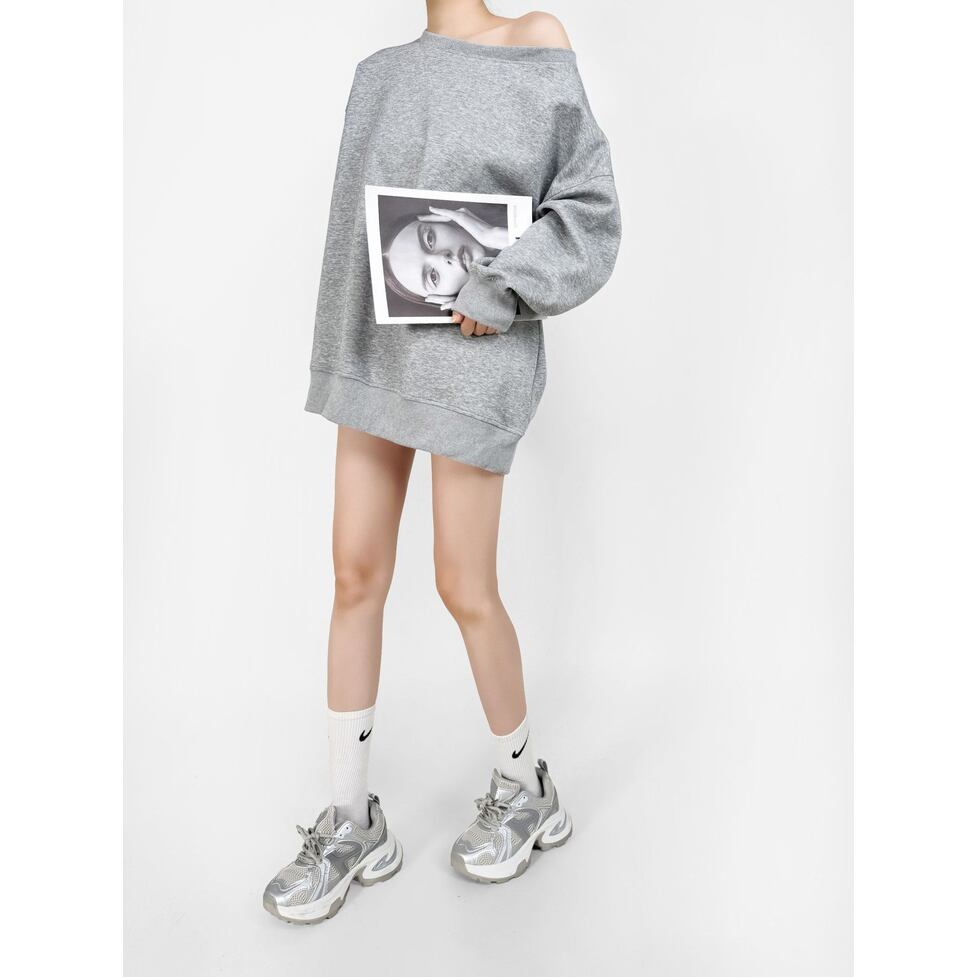 ルーズなワンショルダーシルエットが特徴のビッグスウェット。脱力した雰囲気がめざすのはヘルシーな女らしさ。適度なゆとりで細身とも合わせやすいのも長所。シンプルだけど気の利いた1着。