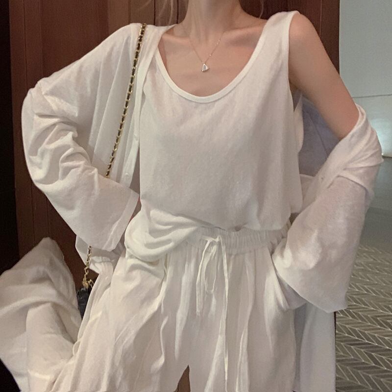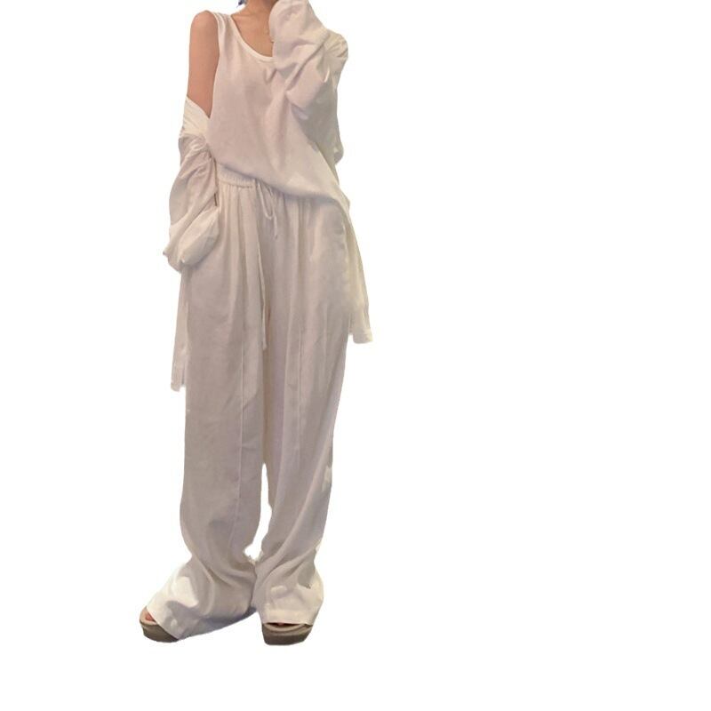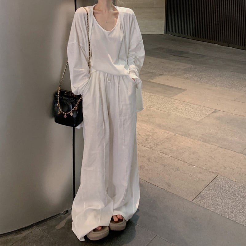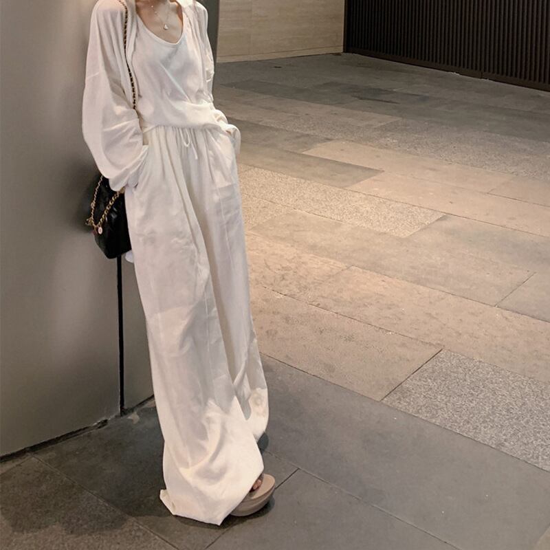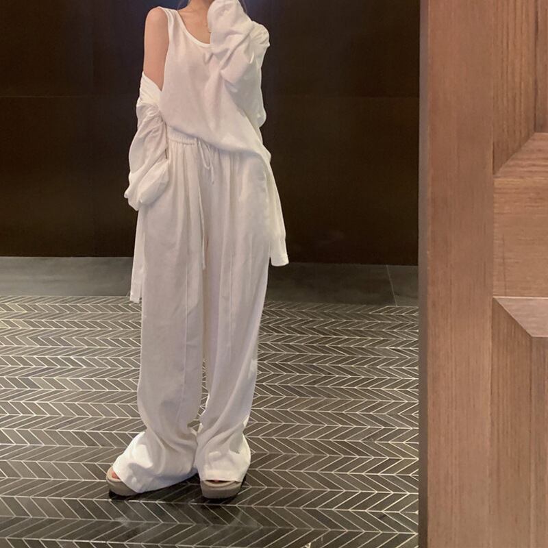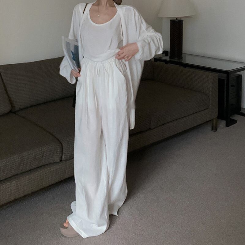 ゆったりとしたシルエットが魅力のレディースセットアップ。リラックス感がありながらも大人のこなれ感を演出します。さらりとした無地ホワイトは清涼感があり、春夏のお出かけや旅行にもぴったりです。