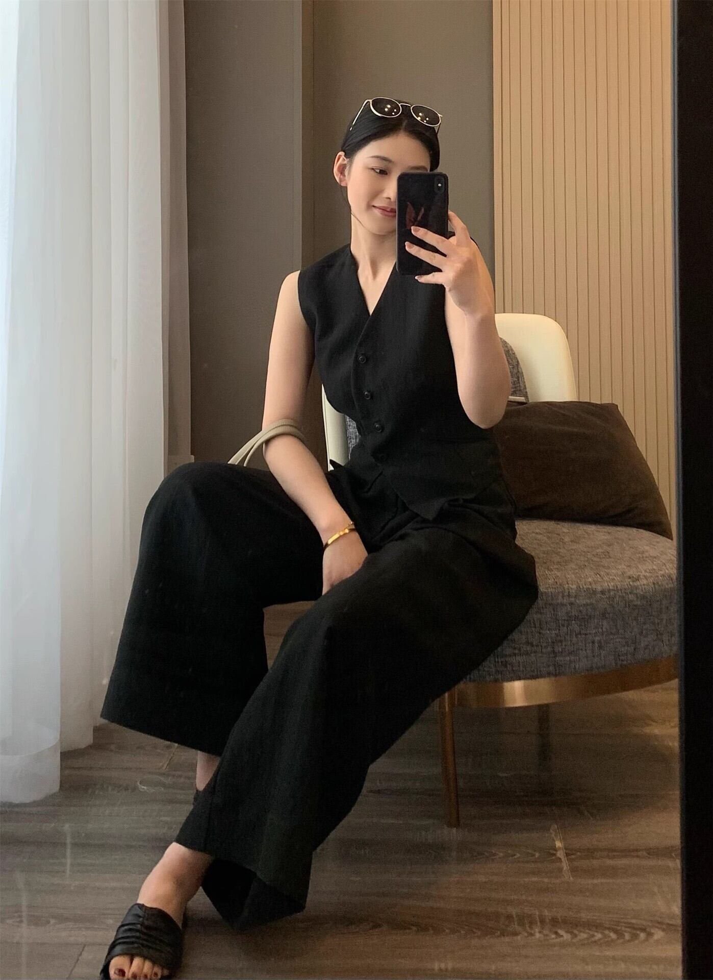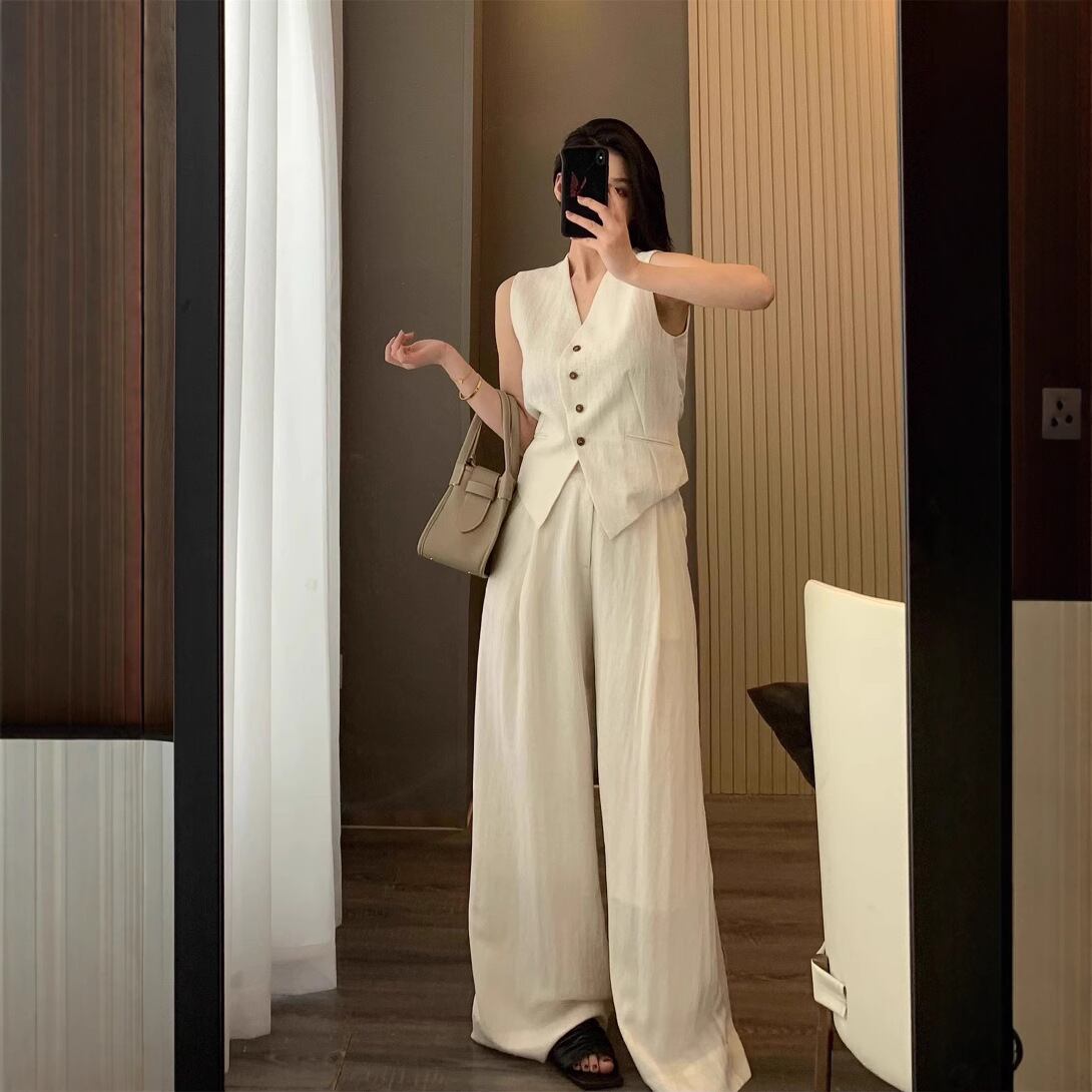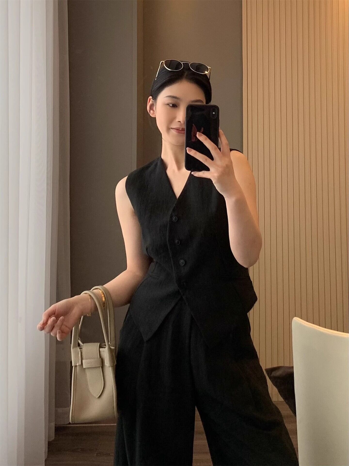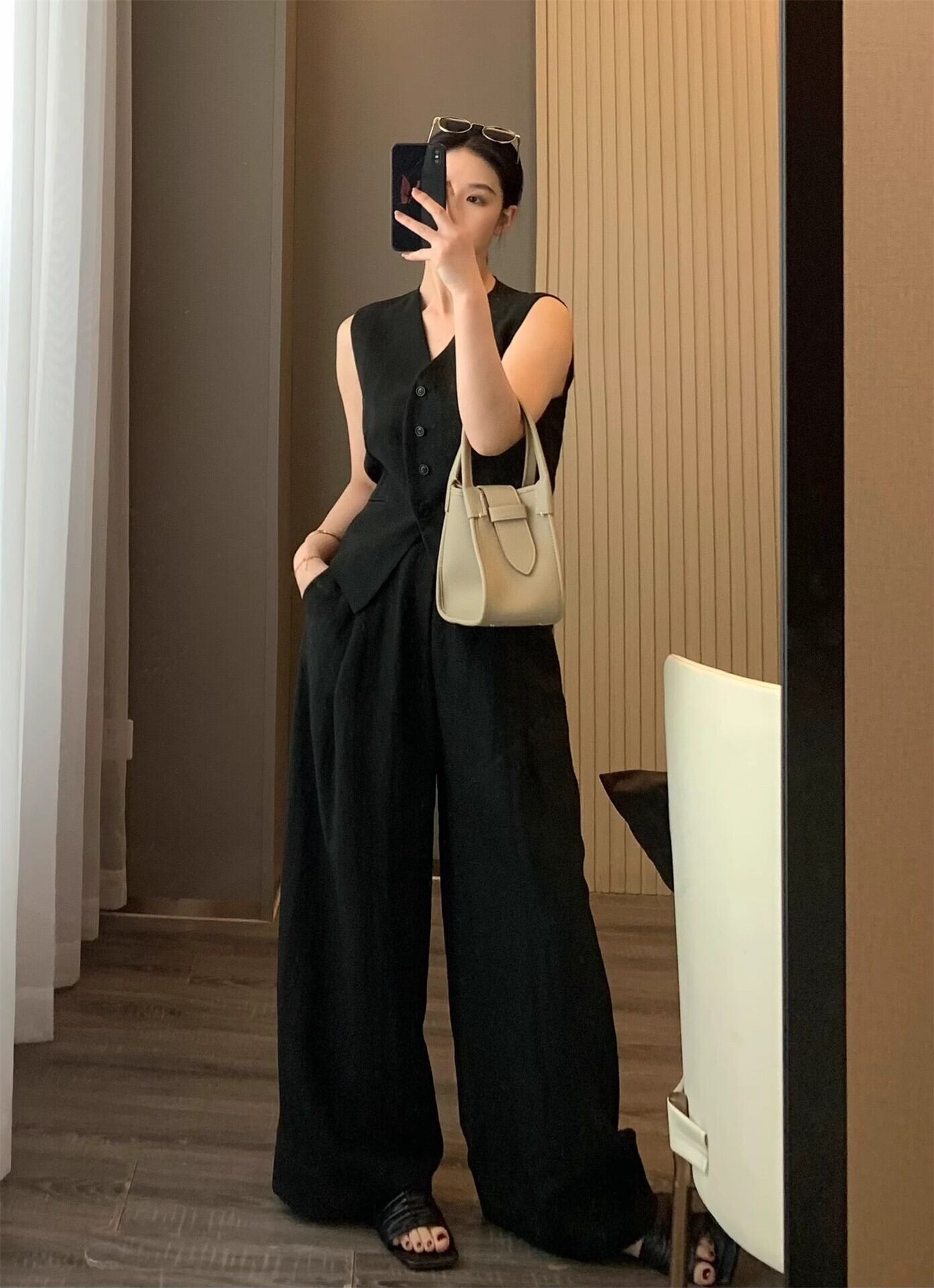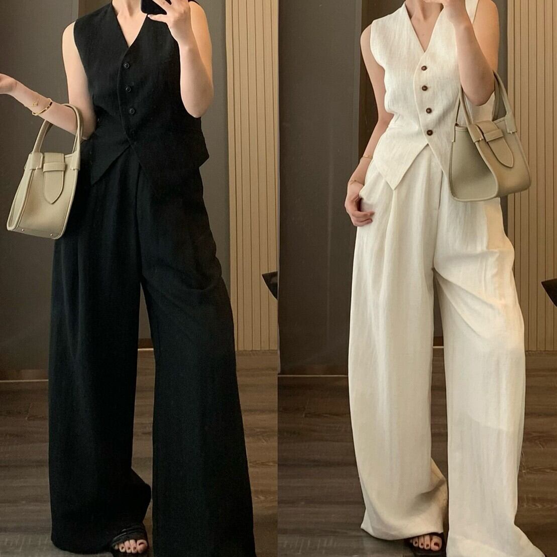 都会的で抜け感のある雰囲気を叶える、レディースツーピースセットアップ。Vネックベストとワイドパンツの組み合わせが、洗練された印象を演出しつつ体型カバーも叶えます。ゆったりとしたシルエットながら美脚効果があり、動きやすさも抜群です。