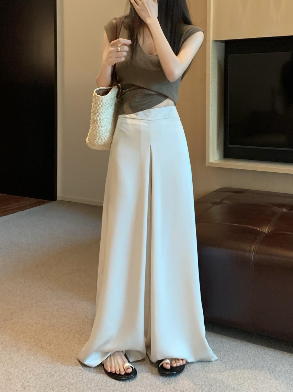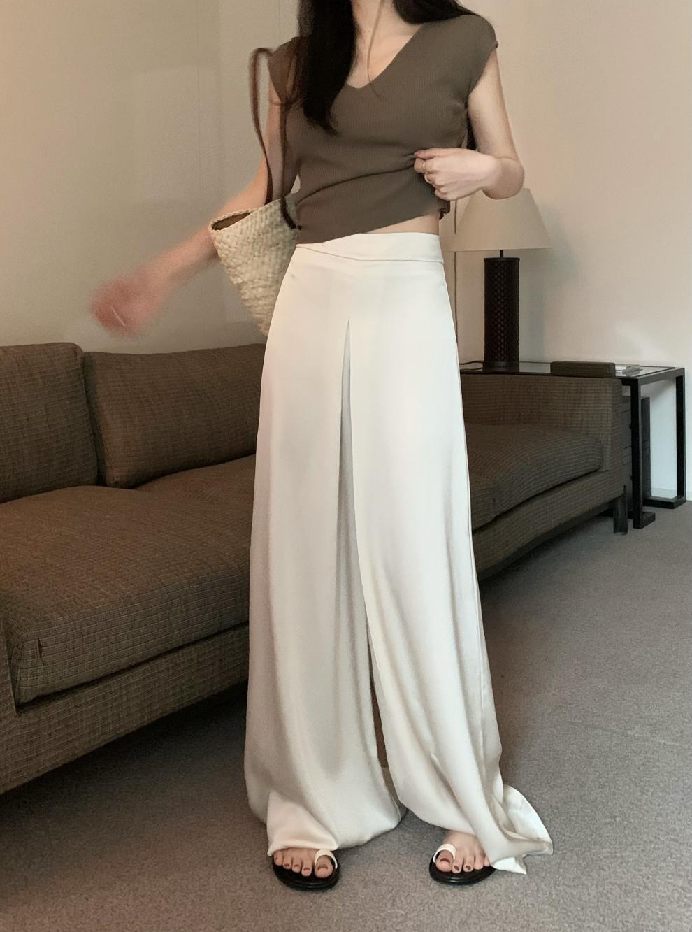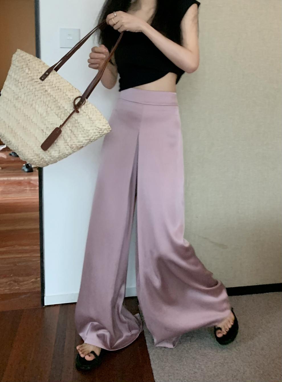 美脚効果を引き出すハイウエストデザインのレディースワイドパンツ。裾にかけて広がるワイドシルエットが、脚をまっすぐ長く見せつつ、こなれ感と存在感をプラスします。シンプルな無地デザインで、どんなトップスとも相性抜群です。